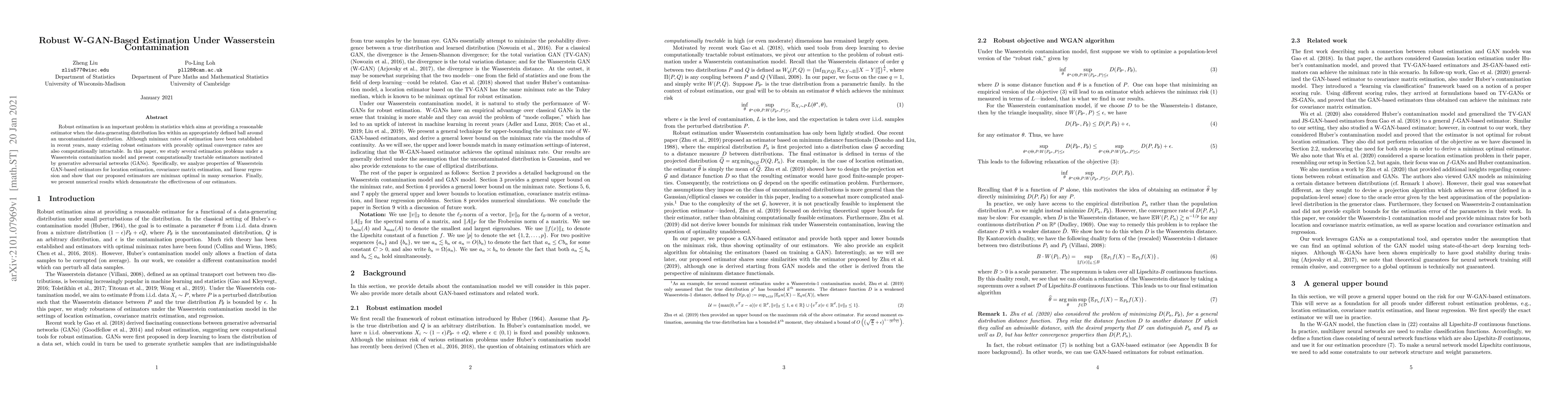 This paper proposes computationally tractable estimators based on Wasserstein GANs for robust estimation under Wasserstein contamination, achieving minimax optimality for location, covariance matrix, and linear regression problems, and demonstrates their effectiveness through numerical results.
