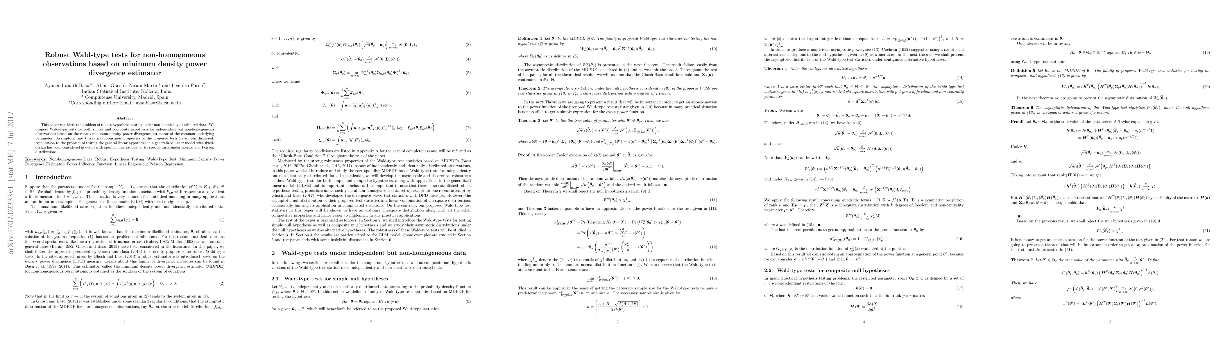 This paper proposes robust Wald-type tests for hypothesis testing under non-homogeneous observations using a minimum density power divergence estimator. The tests' robustness properties are discussed, and they are applied to generalized linear models with fixed-design, illustrated under normal and Poisson distributions.