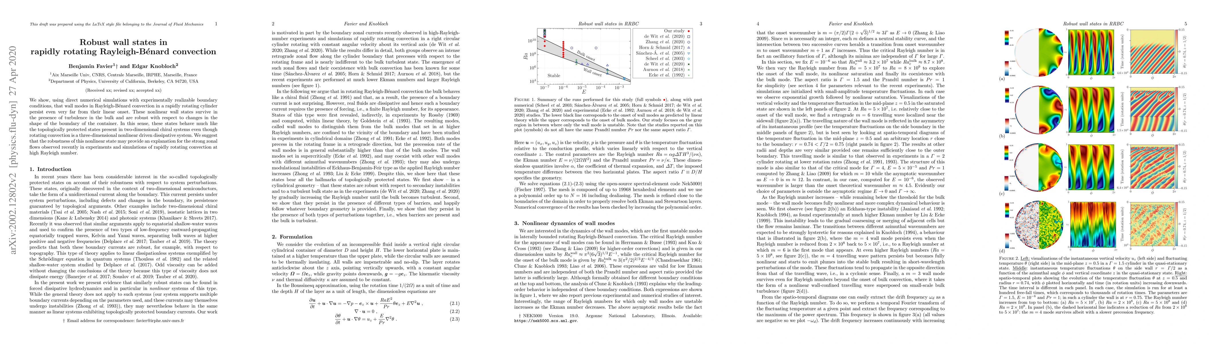 We show, using direct numerical simulations with experimentally realizable boundary conditions, that wall modes in Rayleigh-B\'enard convection in a rapidly rotating cylinder persist even very far from their linear onset. These nonlinear wall states survive in the presence of turbulence in the bulk and are robust with respect to changes in the shape of the boundary of the container. In this sense these modes behave much like the topologically protected states present in two-dimensional chiral systems even though rotating convection is a three-dimensional nonlinear driven dissipative system. We suggest that the robustness of this nonlinear mode may provide an explanation for the strong zonal flows observed recently in simulations and experiments on rapidly rotating convection at high Rayleigh number.