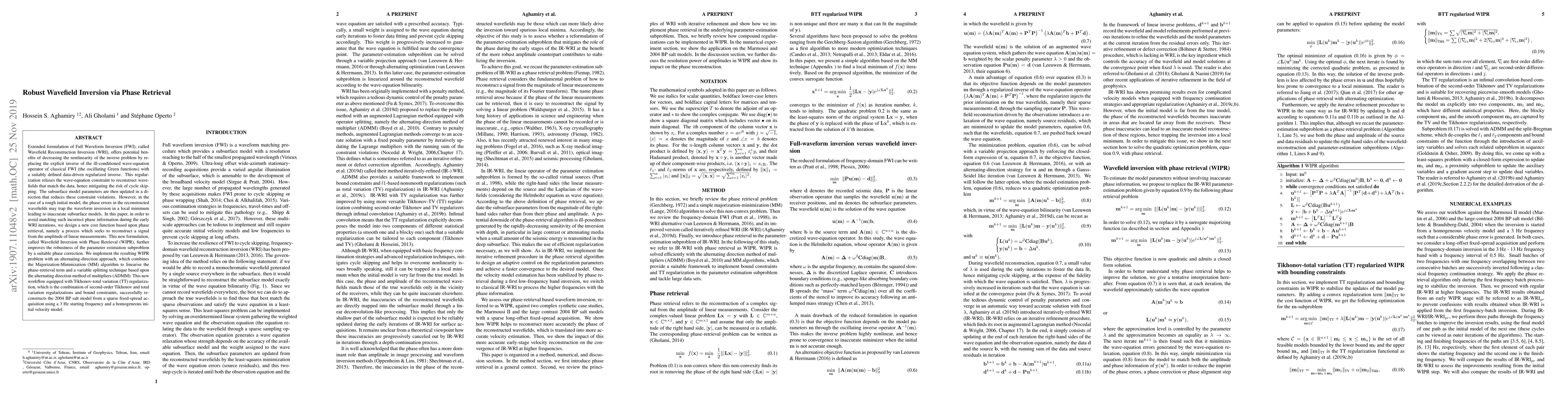Researchers develop a new method called Wavefield Inversion with Phase Retrieval (WIPR) to improve the accuracy of subsurface model estimation in wavefield inversion. WIPR uses phase retrieval to correct for errors in reconstructed wavefields, achieving robust results even with rough initial models.