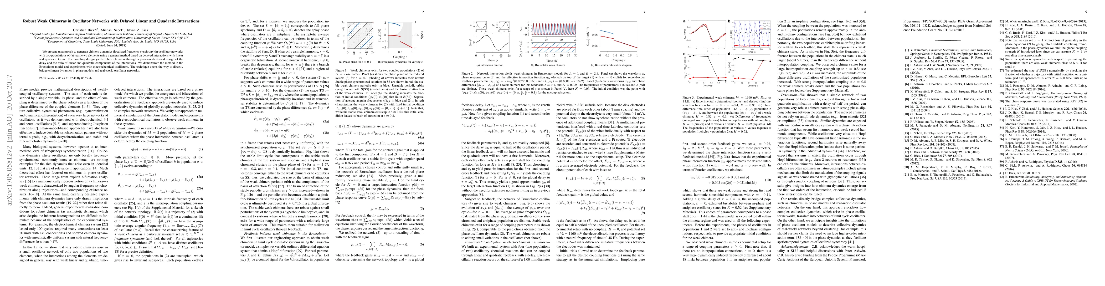 This paper introduces a method to generate robust chimera states in oscillator networks using delayed linear and quadratic interactions, demonstrating its effectiveness in both the Brusselator model and electrochemical oscillator experiments. The technique provides a bridge between theoretical chimera dynamics and practical applications in real-world oscillator systems.