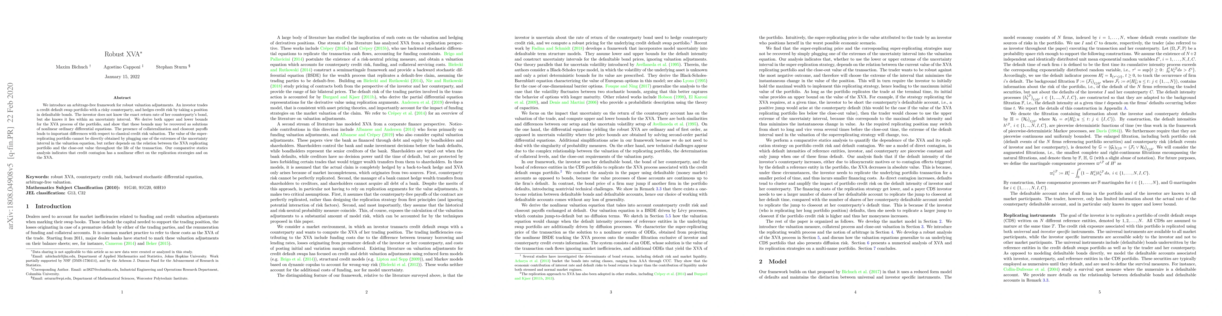 This paper presents an arbitrage-free framework for robust valuation adjustments in credit default swaps, deriving upper and lower bounds for XVA under uncertainty. It highlights the impact of collateralization and closeout payoffs, showing that XVA depends on the relationship between the XVA replicating portfolio and the close-out value over the transaction's life, not just on the extremes of the uncertainty interval.