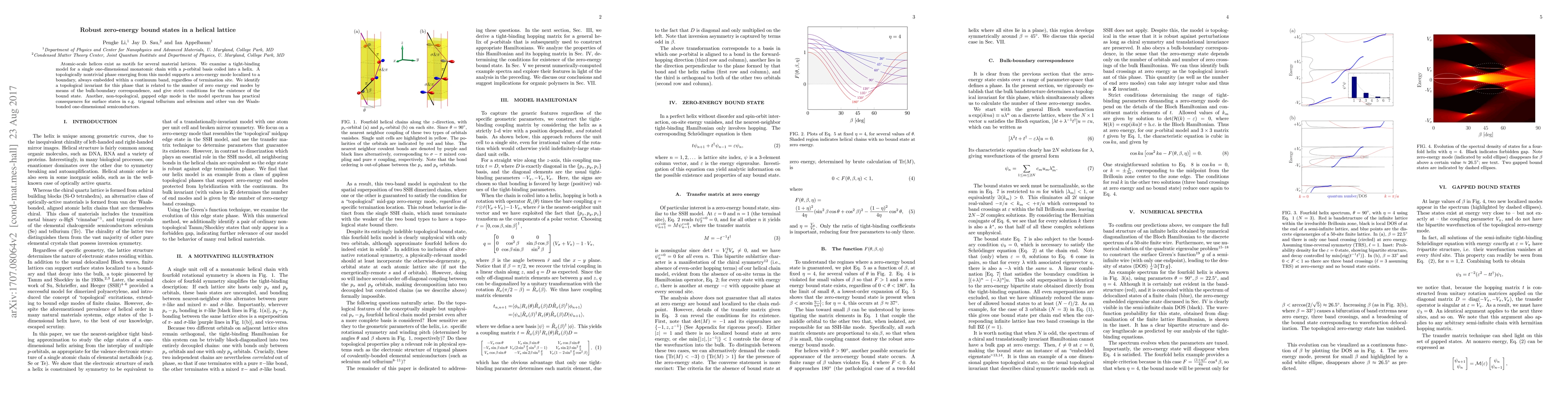 This paper investigates a helical lattice model showing a topologically nontrivial phase with a robust zero-energy bound state at the boundary, unaffected by termination. It also identifies a topological invariant linked to the number of zero-energy modes and discusses practical implications for surface states in van der Waals-bonded semiconductors.