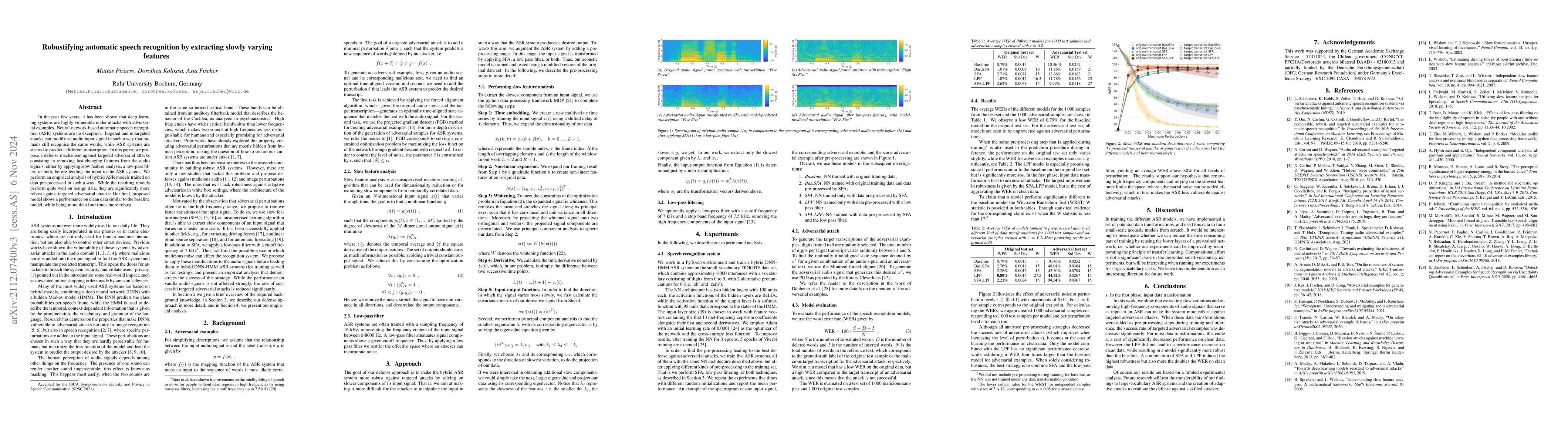 In the past few years, it has been shown that deep learning systems are highly vulnerable under attacks with adversarial examples. Neural-network-based automatic speech recognition (ASR) systems are no exception. Targeted and untargeted attacks can modify an audio input signal in such a way that humans still recognise the same words, while ASR systems are steered to predict a different transcription. In this paper, we propose a defense mechanism against targeted adversarial attacks consisting in removing fast-changing features from the audio signals, either by applying slow feature analysis, a low-pass filter, or both, before feeding the input to the ASR system. We perform an empirical analysis of hybrid ASR models trained on data pre-processed in such a way. While the resulting models perform quite well on benign data, they are significantly more robust against targeted adversarial attacks: Our final, proposed model shows a performance on clean data similar to the baseline model, while being more than four times more robust.