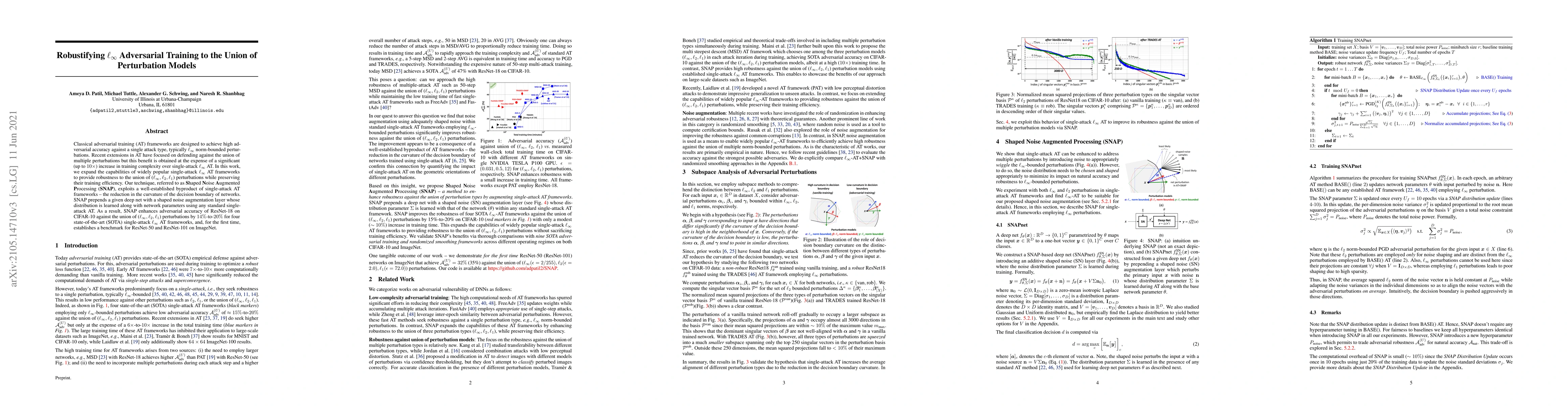 This paper proposes Shaped Noise Augmented Processing (SNAP) to enhance adversarial training against a union of $\ell_\infty$, $\ell_2$, and $\ell_1$ perturbations without increasing training complexity. SNAP introduces a shaped noise augmentation layer, improving adversarial accuracy by 14%-to-20% for various ResNet models on CIFAR-10 and establishing new benchmarks for ResNet-50 and ResNet-101 on ImageNet.