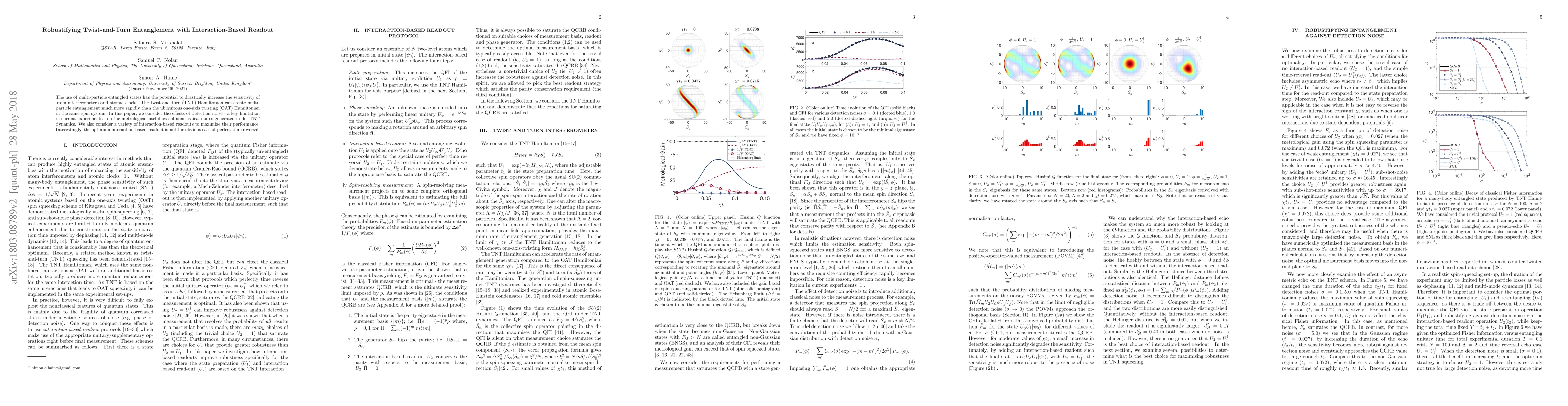 The use of multi-particle entangled states has the potential to drastically increase the sensitivity of atom interferometers and atomic clocks. The Twist-and-Turn (TNT) Hamiltonian can create multi-particle entanglement much more rapidly than ubiquitous one-axis twisting (OAT) Hamiltonian in the same spin system. In this paper, we consider the effects of detection noise - a key limitation in current experiments - on the metrological usefulness of these nonclassical states and also consider a variety of interaction-based readouts to maximize their performance. Interestingly, the optimum interaction-based readout is not the obvious case of perfect time reversal.