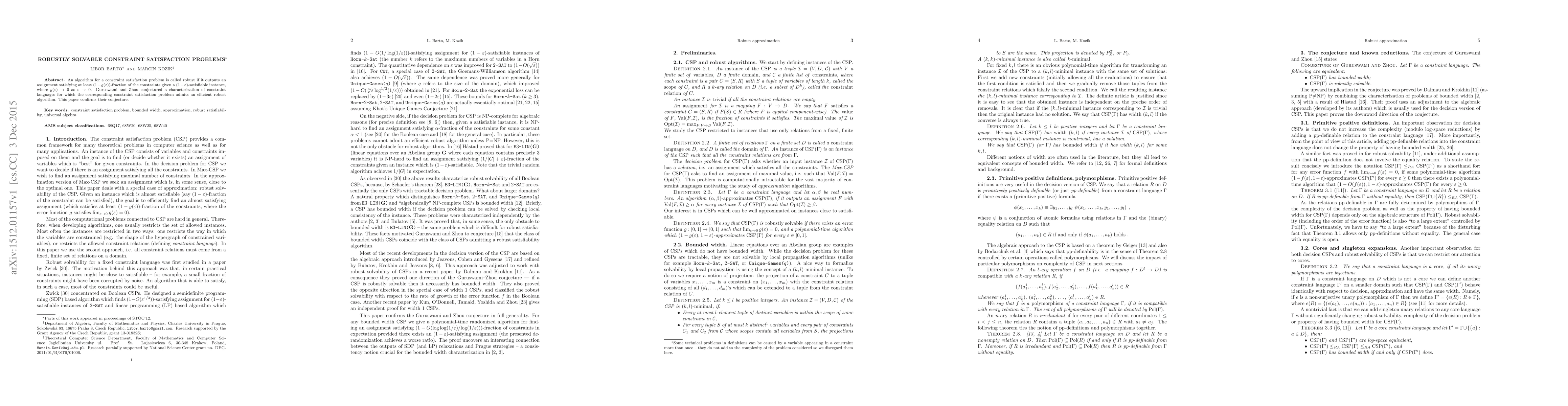 An algorithm for a constraint satisfaction problem is called robust if it outputs an assignment satisfying at least $(1-g(\varepsilon))$-fraction of the constraints given a $(1-\varepsilon)$-satisfiable instance, where $g(\varepsilon) \rightarrow 0$ as $\varepsilon \rightarrow 0$. Guruswami and Zhou conjectured a characterization of constraint languages for which the corresponding constraint satisfaction problem admits an efficient robust algorithm. This paper confirms their conjecture.