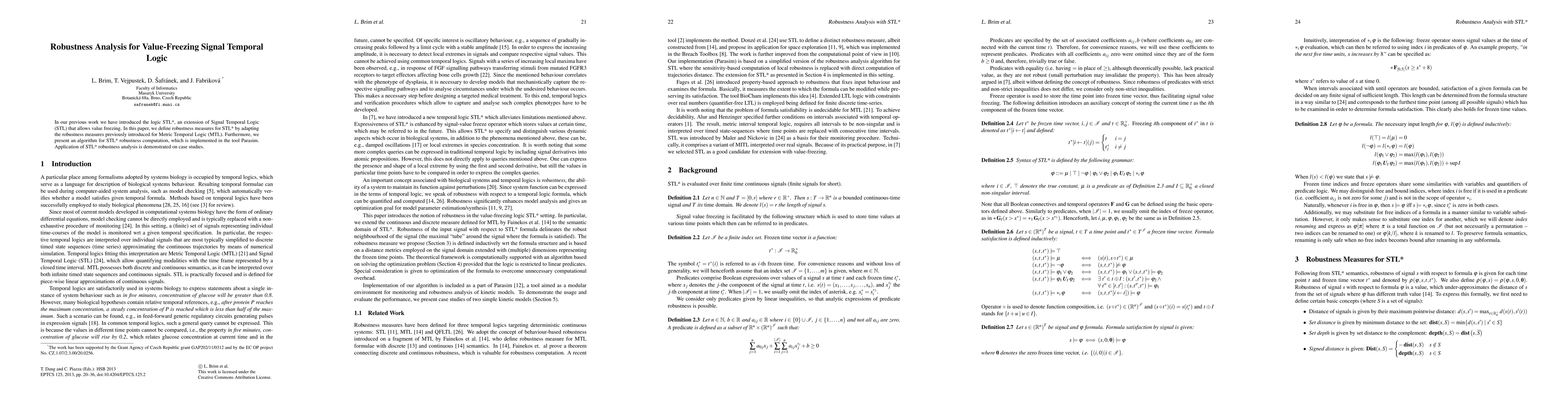 This paper introduces robustness measures for STL*, an extension of Signal Temporal Logic allowing value freezing, by adapting measures from Metric Temporal Logic (MTL). It presents an algorithm for computing STL* robustness and demonstrates its application through case studies using the Parasim tool.