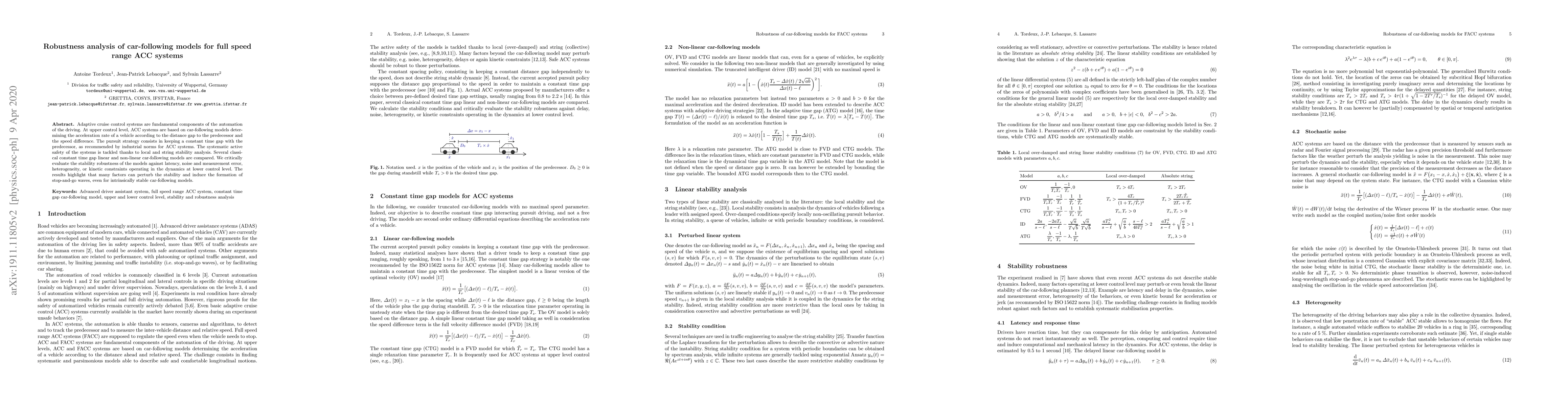 This research paper analyzes the robustness of car-following models used in adaptive cruise control (ACC) systems, which are crucial for vehicle automation. The study compares various constant time gap models, assessing their stability under latency, noise, measurement errors, heterogeneity, and kinetic constraints. The findings reveal that numerous factors can disrupt stability and generate stop-and-go traffic waves, even in models that are inherently stable.