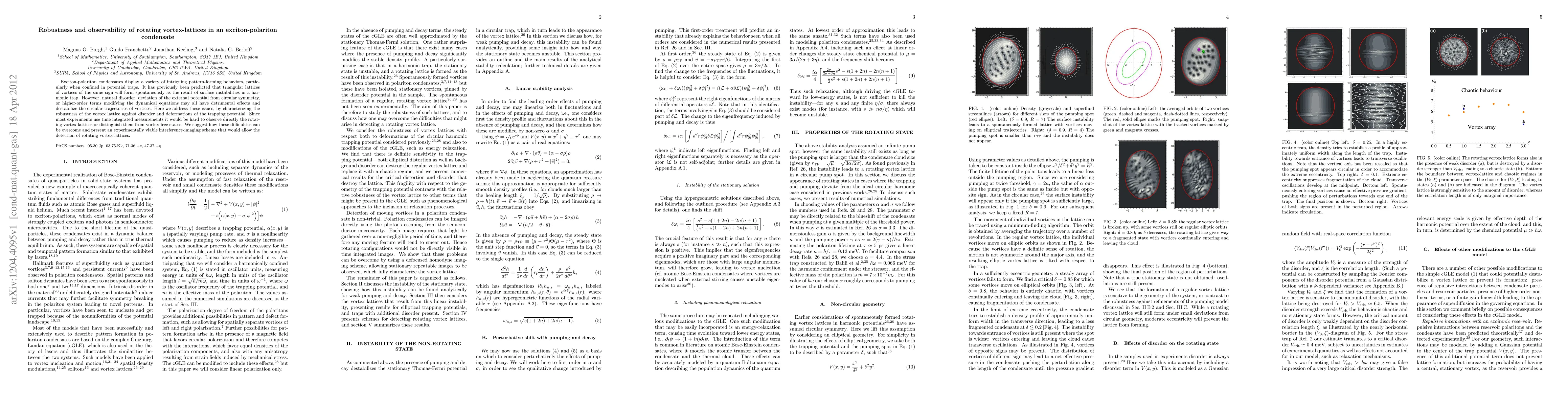 This paper investigates the robustness and observability of rotating vortex lattices in exciton-polariton condensates, addressing potential destabilizations due to disorder and trapping potential deformations. It proposes an interference-imaging scheme for experimentally detecting these lattices, overcoming challenges posed by time-integrated measurements.