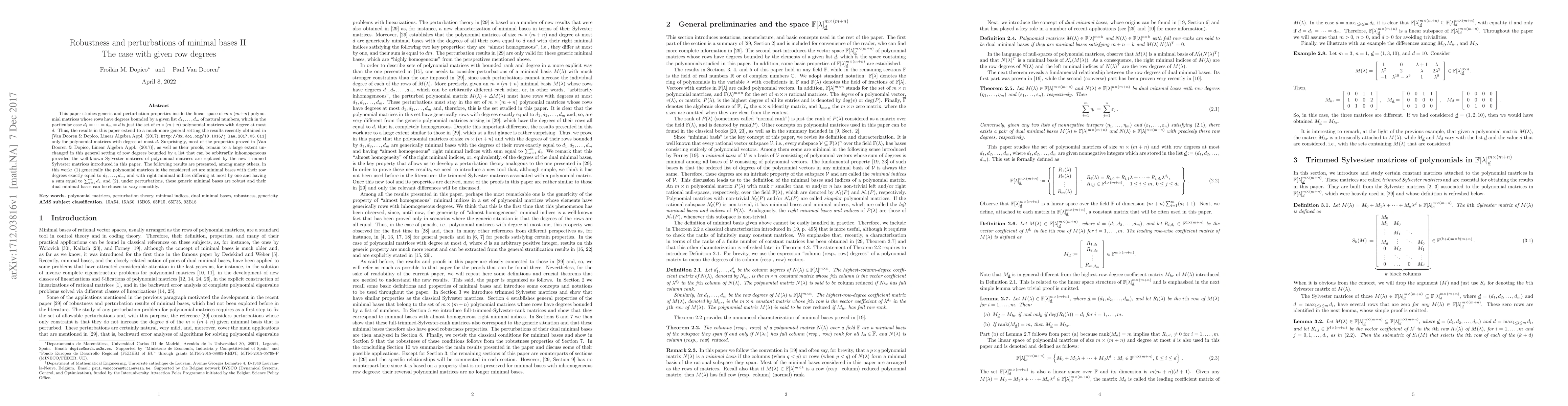 This paper studies generic and perturbation properties inside the linear space of $m\times (m+n)$ polynomial matrices whose rows have degrees bounded by a given list $d_1, \ldots, d_m$ of natural numbers, which in the particular case $d_1 = \cdots = d_m = d$ is just the set of $m\times (m+n)$ polynomial matrices with degree at most $d$. Thus, the results in this paper extend to a much more general setting the results recently obtained in [Van Dooren & Dopico, Linear Algebra Appl. (2017), http://dx.doi.org/10.1016/j.laa.2017.05.011] only for polynomial matrices with degree at most $d$. Surprisingly, most of the properties proved in [Van Dooren & Dopico, Linear Algebra Appl. (2017)], as well as their proofs, remain to a large extent unchanged in this general setting of row degrees bounded by a list that can be arbitrarily inhomogeneous provided the well-known Sylvester matrices of polynomial matrices are replaced by the new trimmed Sylvester matrices introduced in this paper. The following results are presented, among many others, in this work: (1) generically the polynomial matrices in the considered set are minimal bases with their row degrees exactly equal to $d_1, \ldots , d_m$, and with right minimal indices differing at most by one and having a sum equal to $\sum_{i=1}^{m} d_i$, and (2), under perturbations, these generic minimal bases are robust and their dual minimal bases can be chosen to vary smoothly.