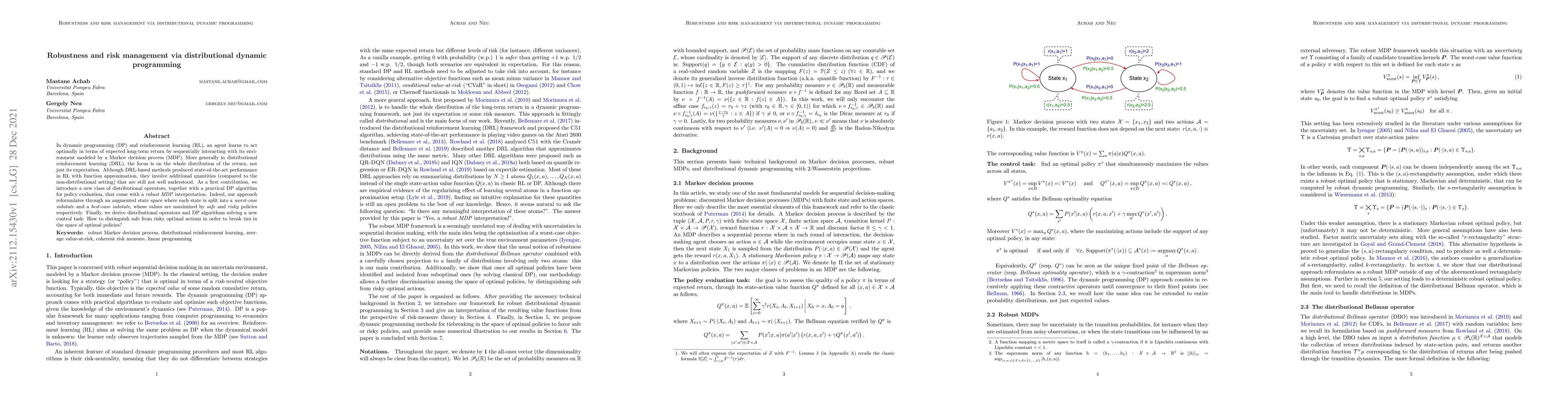 This research introduces a novel class of distributional operators and a dynamic programming algorithm for policy evaluation, providing a robust MDP interpretation. It reformulates states into worst-case and best-case substates, enabling safe and risky policies. The method aims to distinguish optimal, tied actions, offering a new approach to risk management in reinforcement learning.