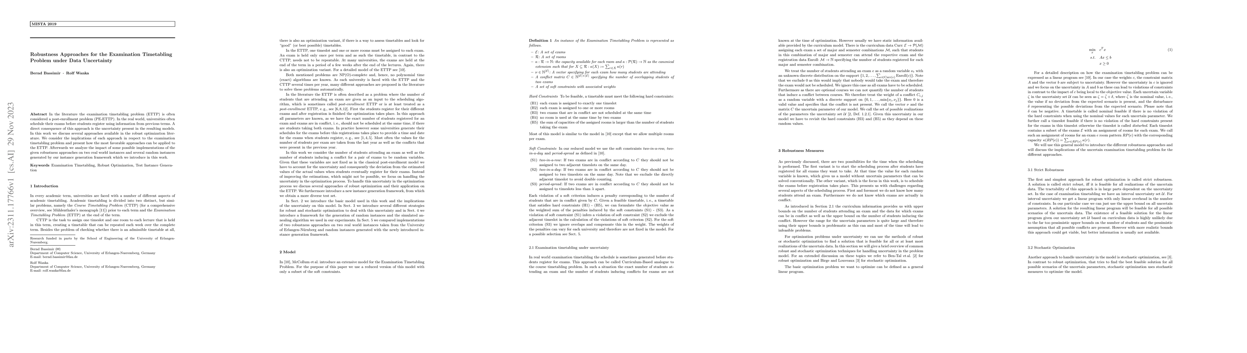 This paper explores robust optimization techniques to address the uncertainty inherent in the examination timetabling problem (ETTP) due to pre-enrollment scheduling. It evaluates various robustness approaches from the literature and demonstrates their application to real-world and randomly generated instances, highlighting their effectiveness in handling data uncertainty.