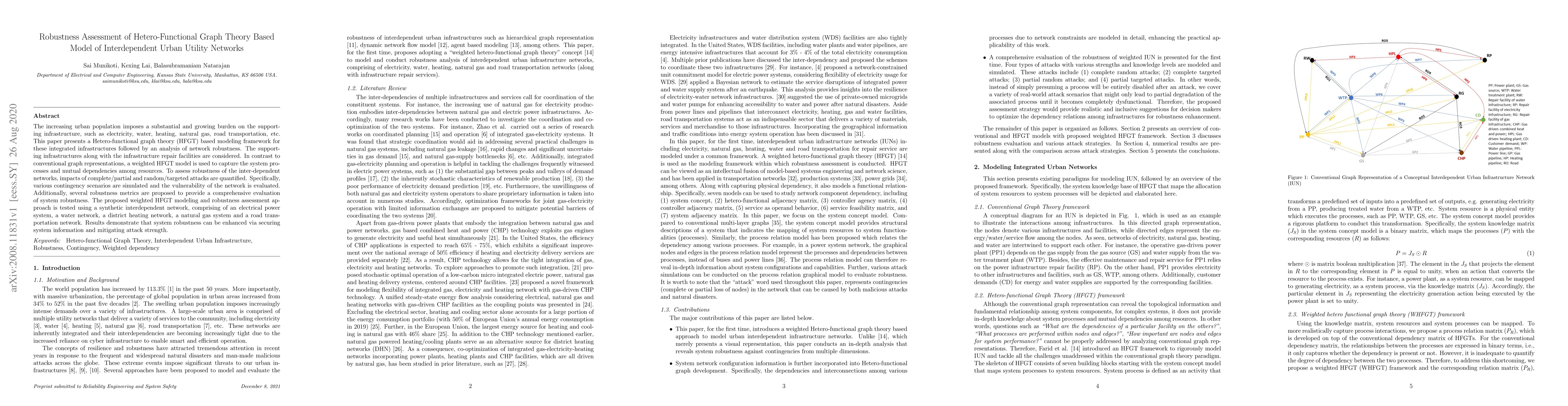 This paper develops a Hetero-functional graph theory (HFGT) based model to analyze the robustness of interdependent urban utility networks, assessing the impact of various attack scenarios and proposing new robustness metrics. Results from a synthetic network show that enhancing system information and reducing attack strength can improve network resilience.