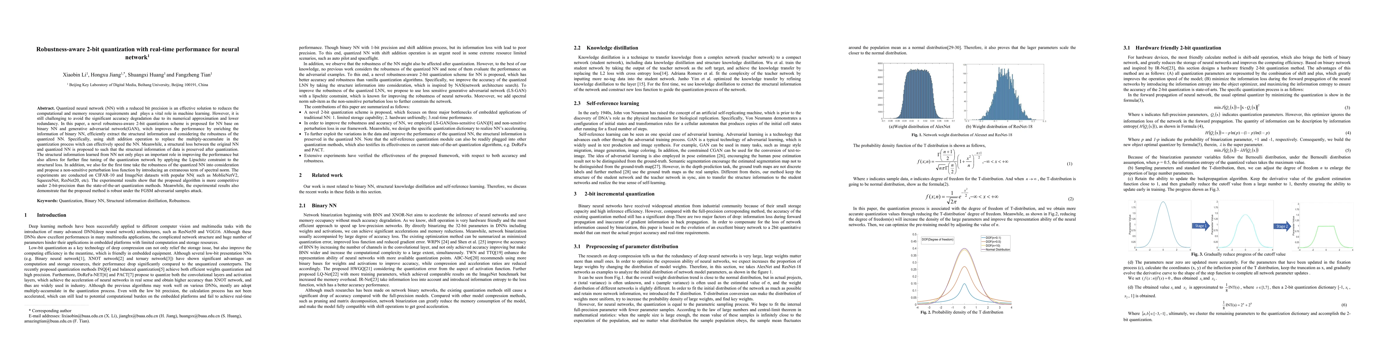 This research introduces a novel 2-bit quantization method for neural networks using binary neural networks and generative adversarial networks (GANs). It enhances performance by enriching binary NN information, efficiently extracting structural data, and ensuring robustness. The method replaces multiply-accumulate operations with shift additions for speed, proposes a structural loss to preserve data structure, and a non-sensitive perturbation loss function for robustness. Experiments on CIFAR-10 and ImageNet datasets show competitive performance under 2-bit precision and robustness against FGSM adversarial attacks.