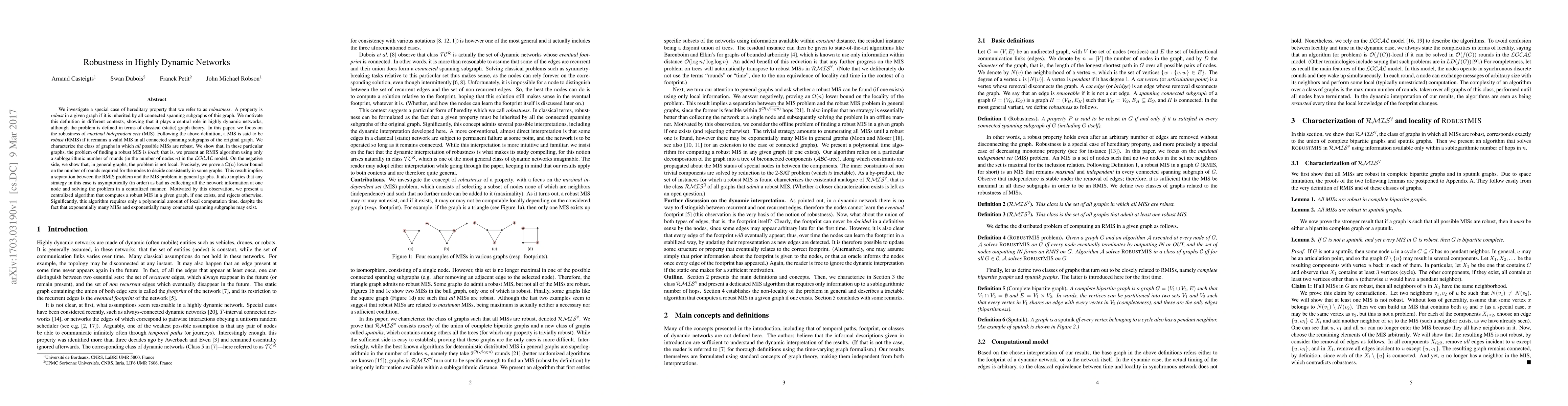 We investigate a special case of hereditary property that we refer to as {\em robustness}. A property is {\em robust} in a given graph if it is inherited by all connected spanning subgraphs of this graph. We motivate this definition in different contexts, showing that it plays a central role in highly dynamic networks, although the problem is defined in terms of classical (static) graph theory. In this paper, we focus on the robustness of {\em maximal independent sets} (MIS). Following the above definition, a MIS is said to be {\em robust} (RMIS) if it remains a valid MIS in all connected spanning subgraphs of the original graph. We characterize the class of graphs in which {\em all} possible MISs are robust. We show that, in these particular graphs, the problem of finding a robust MIS is {\em local}; that is, we present an RMIS algorithm using only a sublogarithmic number of rounds (in the number of nodes $n$) in the ${\cal LOCAL}$ model. On the negative side, we show that, in general graphs, the problem is not local. Precisely, we prove a $\Omega(n)$ lower bound on the number of rounds required for the nodes to decide consistently in some graphs. This result implies a separation between the RMIS problem and the MIS problem in general graphs. It also implies that any strategy in this case is asymptotically (in order) as bad as collecting all the network information at one node and solving the problem in a centralized manner. Motivated by this observation, we present a centralized algorithm that computes a robust MIS in a given graph, if one exists, and rejects otherwise. Significantly, this algorithm requires only a polynomial amount of local computation time, despite the fact that exponentially many MISs and exponentially many connected spanning subgraphs may exist.