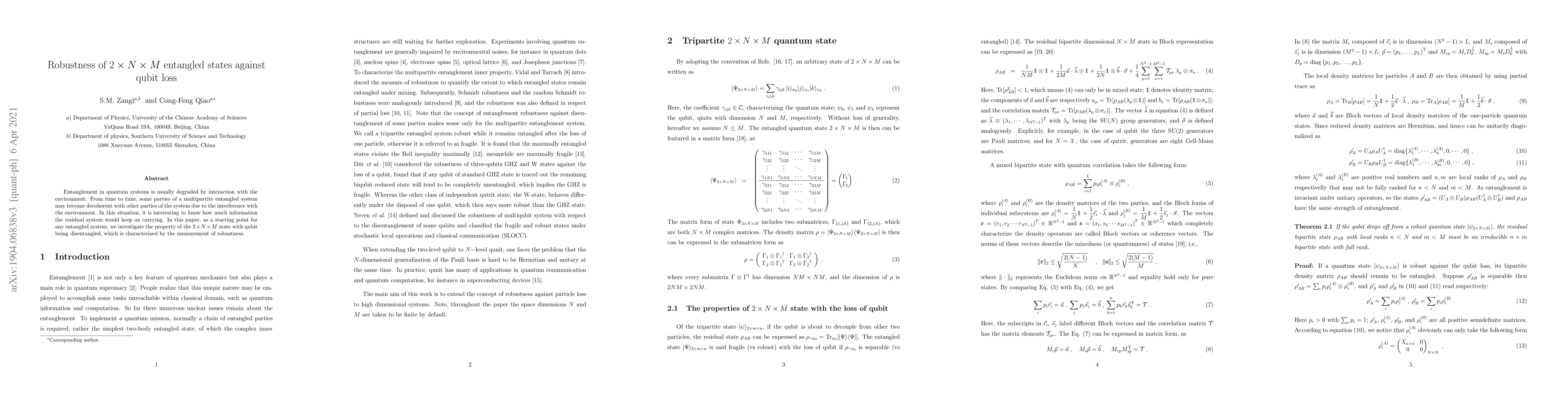 This paper examines the robustness of 2 x N x M entangled states against qubit loss, focusing on how much information remains in the residual system when some qubits become decoherent due to environmental interference. The study measures the robustness to understand the resilience of these entangled states.