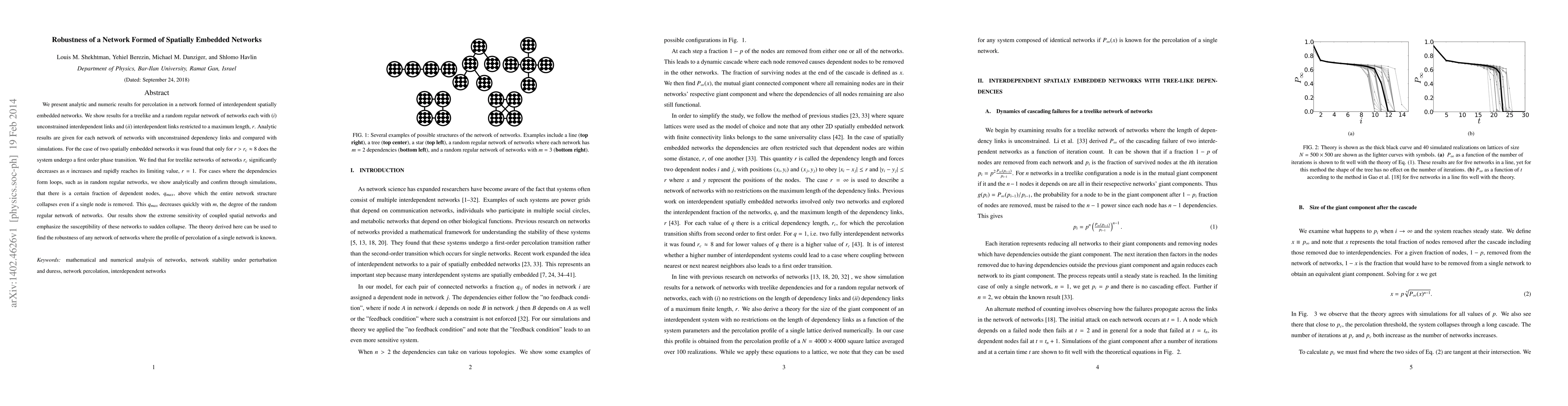 This paper investigates the robustness of spatially embedded networks through percolation analysis, finding that treelike structures show decreased critical thresholds for collapse with more layers, while random regular networks collapse at a higher fraction of dependencies even with node removals. The study highlights the fragility of such coupled networks.