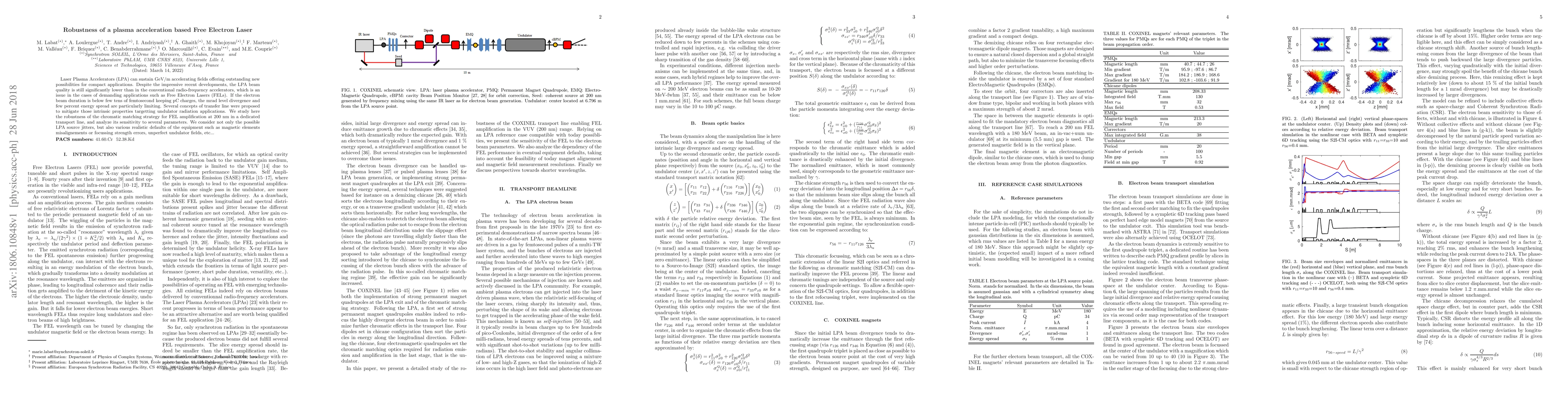 Laser Plasma Accelerators (LPA) can sustain GeV/m accelerating fields offering outstanding new possibilities for compact applications. Despite the impressive recent developments, the LPA beam quality is still significantly lower than in the conventional radio-frequency accelerators, which is an issue in the cases of demanding applications such as Free Electron Lasers (FELs). If the electron beam duration is below few tens of femtosecond keeping pC charges, the mrad level divergence and few percent energy spread are particularly limiting. Several concepts of transfer line were proposed to mitigate those intrinsic properties targetting undulator radiation applications. We study here the robustness of the chromatic matching strategy for FEL amplification at 200~nm in a dedicated transport line, and analyze its sensitivity to several parameters. We consider not only the possible LPA source jitters, but also various realistic defaults of the equipment such as magnetic elements misalignements or focussing strength errors, unperfect undulator fields, etc...