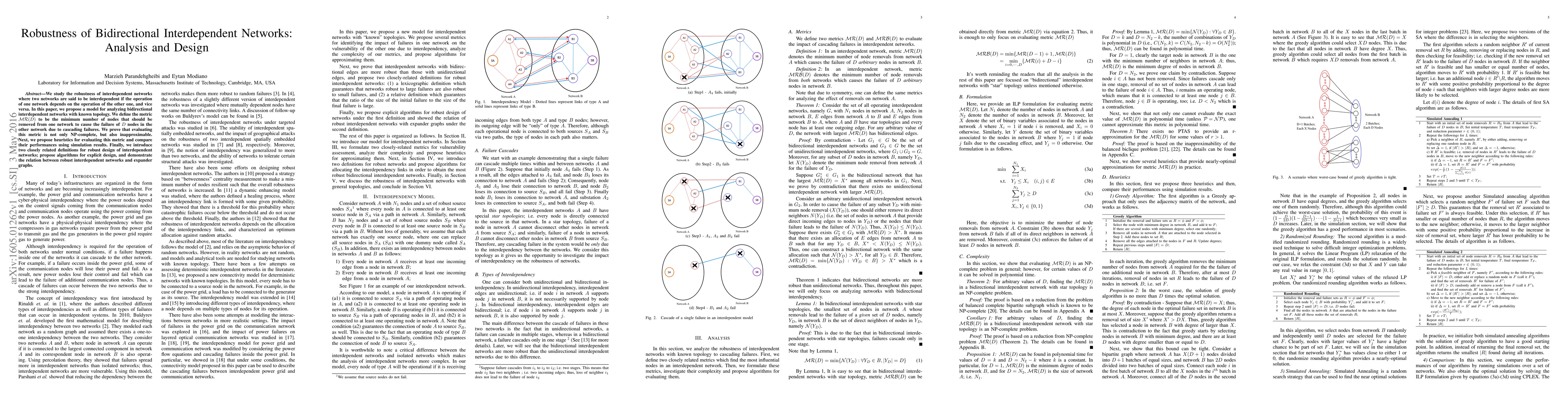 This paper investigates the robustness of bidirectional interdependent networks, proposing a model and metric MR(D) for analyzing cascading failures. It proves the evaluation of MR(D) to be NP-complete and inapproximable, then introduces heuristics for practical evaluation and explores robust design algorithms, linking robust networks to expander graphs.