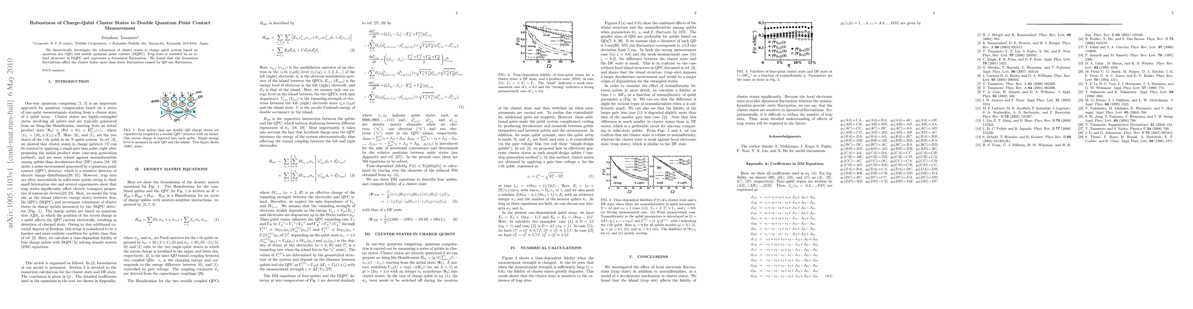 The study investigates the robustness of cluster states in charge qubit systems to double quantum point contact measurement fluctuations, finding that dynamical fluctuations have a greater impact than static QD size fluctuations.