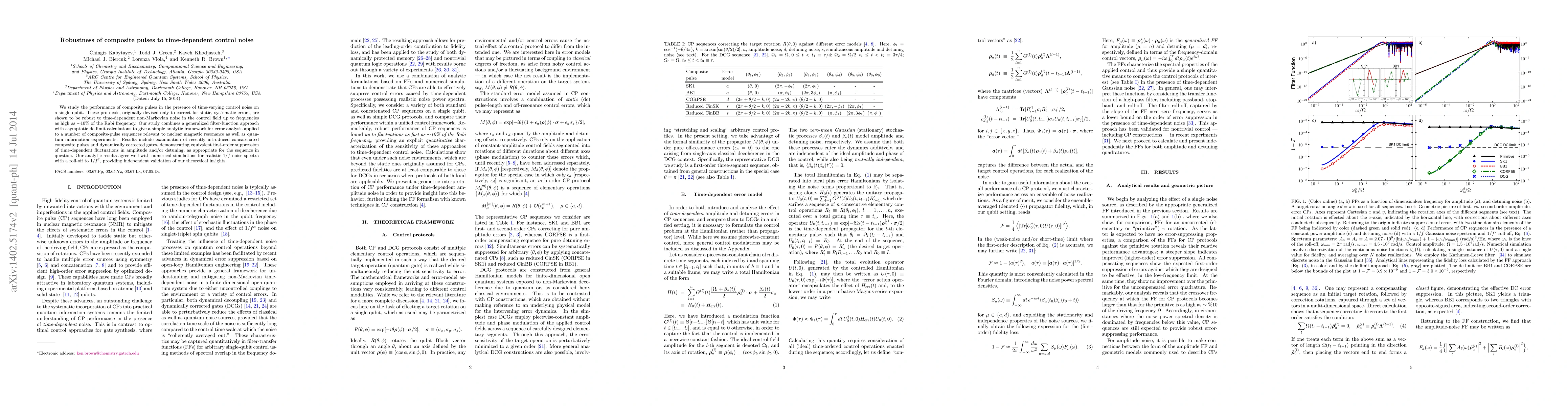 This paper investigates the robustness of composite pulses against time-dependent control noise in single-qubit systems, demonstrating their effectiveness up to ~10% of the Rabi frequency. The study combines a generalized filter-function approach with analytic calculations to analyze various composite-pulse sequences, showing their first-order suppression of noise fluctuations.