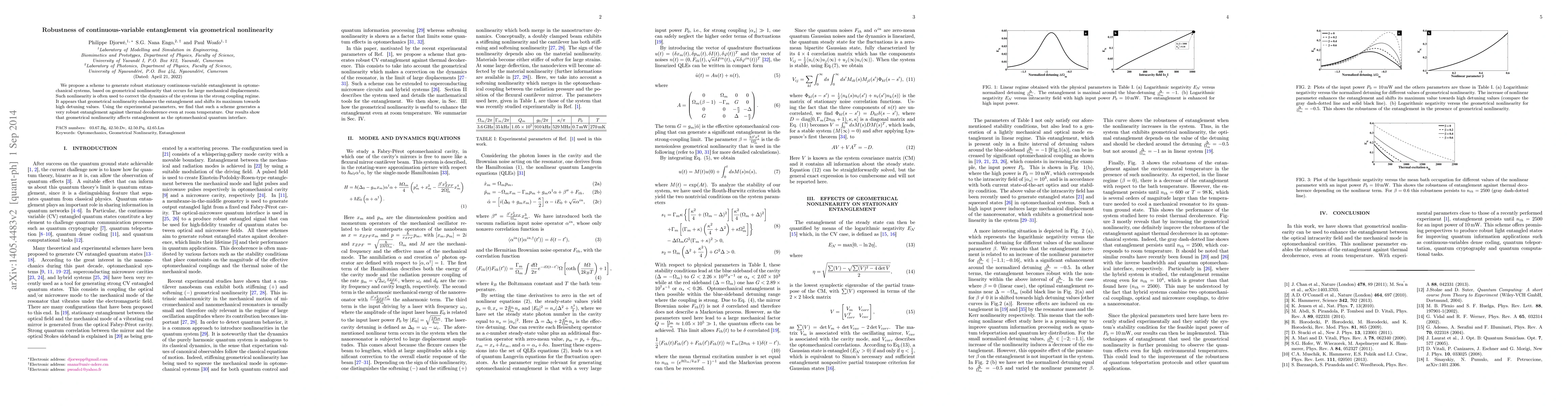 This paper proposes a method to create robust continuous-variable entanglement in optomechanical systems using geometrical nonlinearity for large mechanical displacements. The study finds that this nonlinearity enhances entanglement and makes it robust against thermal decoherence, even at room temperature.