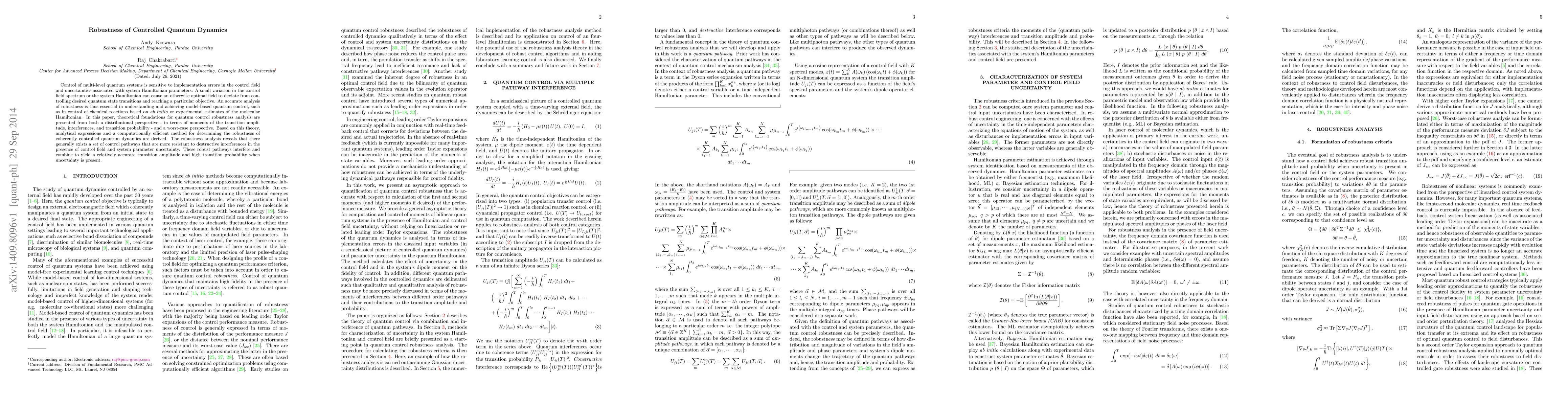 Control of multi-level quantum systems is sensitive to implementation errors in the control field and uncertainties associated with system Hamiltonian parameters. A small variation in the control field spectrum or the system Hamiltonian can cause an otherwise optimal field to deviate from controlling desired quantum state transitions and reaching a particular objective. An accurate analysis of robustness is thus essential in understanding and achieving model-based quantum control, such as in control of chemical reactions based on ab initio or experimental estimates of the molecular Hamiltonian. In this paper, theoretical foundations for quantum control robustness analysis are presented from both a distributional perspective - in terms of moments of the transition amplitude, interferences, and transition probability - and a worst-case perspective. Based on this theory, analytical expressions and a computationally efficient method for determining the robustness of coherently controlled quantum dynamics are derived. The robustness analysis reveals that there generally exists a set of control pathways that are more resistant to destructive interferences in the presence of control field and system parameter uncertainty. These robust pathways interfere and combine to yield a relatively accurate transition amplitude and high transition probability when uncertainty is present.