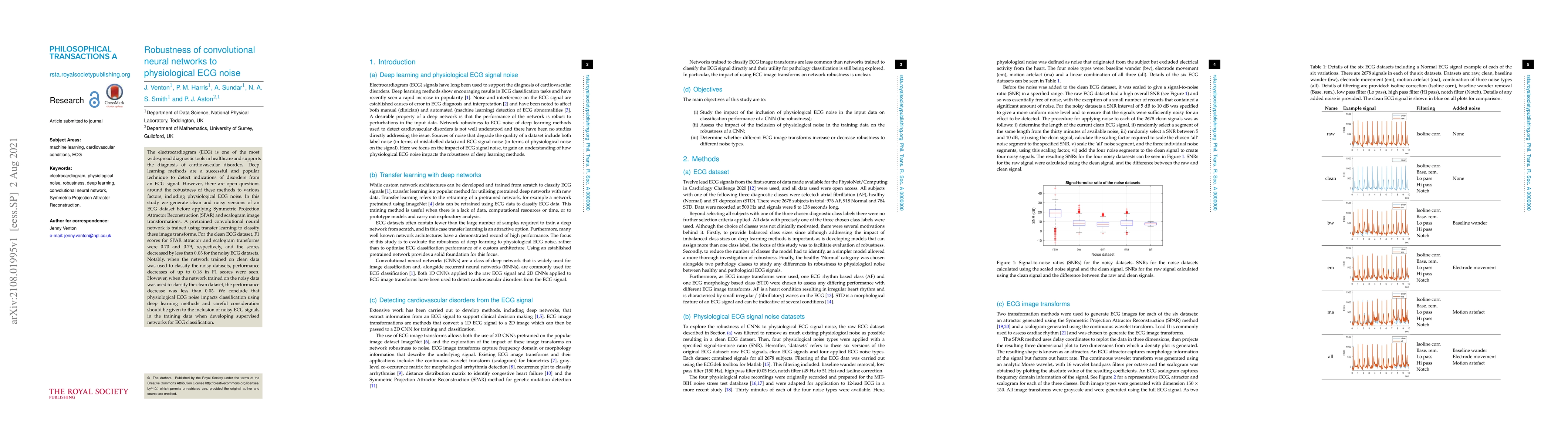 This study investigates the robustness of convolutional neural networks (CNNs) to physiological ECG noise, finding that while noise slightly impacts performance, networks trained on noisy data show better generalization to clean data. The research highlights the importance of including noisy ECG signals in training datasets for robust ECG classification.