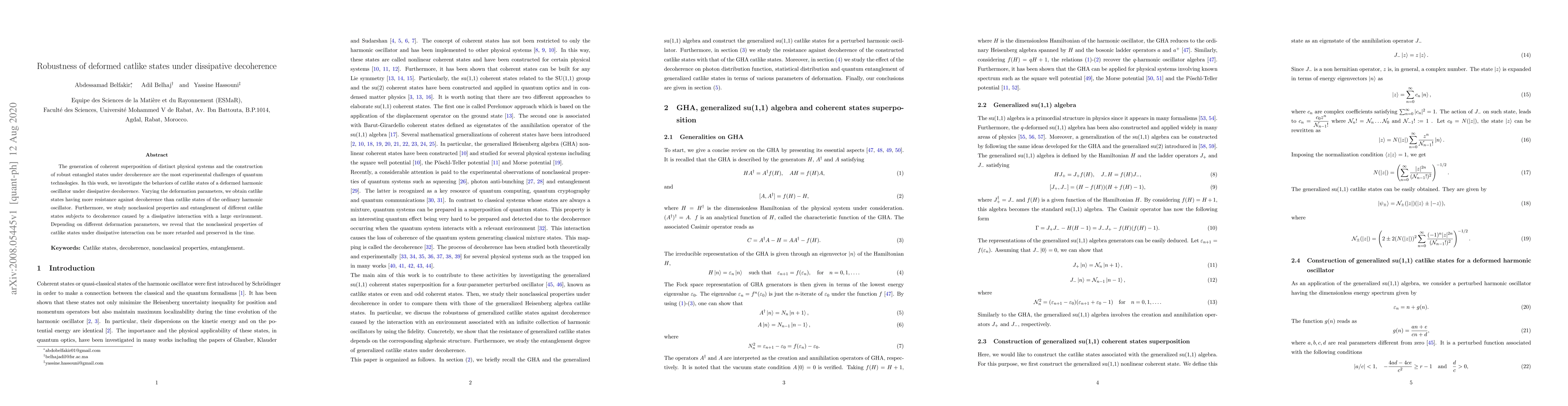 This paper investigates how deformed catlike states of a harmonic oscillator resist decoherence compared to ordinary catlike states. It finds that varying deformation parameters enhances the robustness and preservation of nonclassical properties and entanglement under dissipative decoherence.