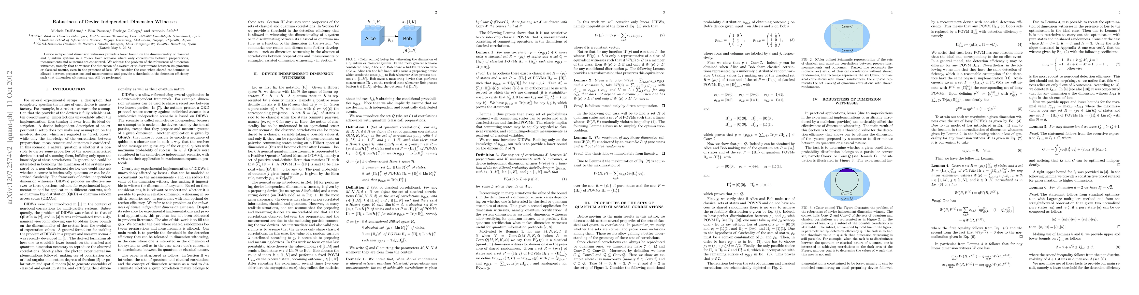 This paper investigates the robustness of device independent dimension witnesses in scenarios with potential loss, demonstrating a threshold detection efficiency for maintaining the ability to determine the dimensionality and distinguish between quantum and classical nature of a system, even when shared randomness is involved.