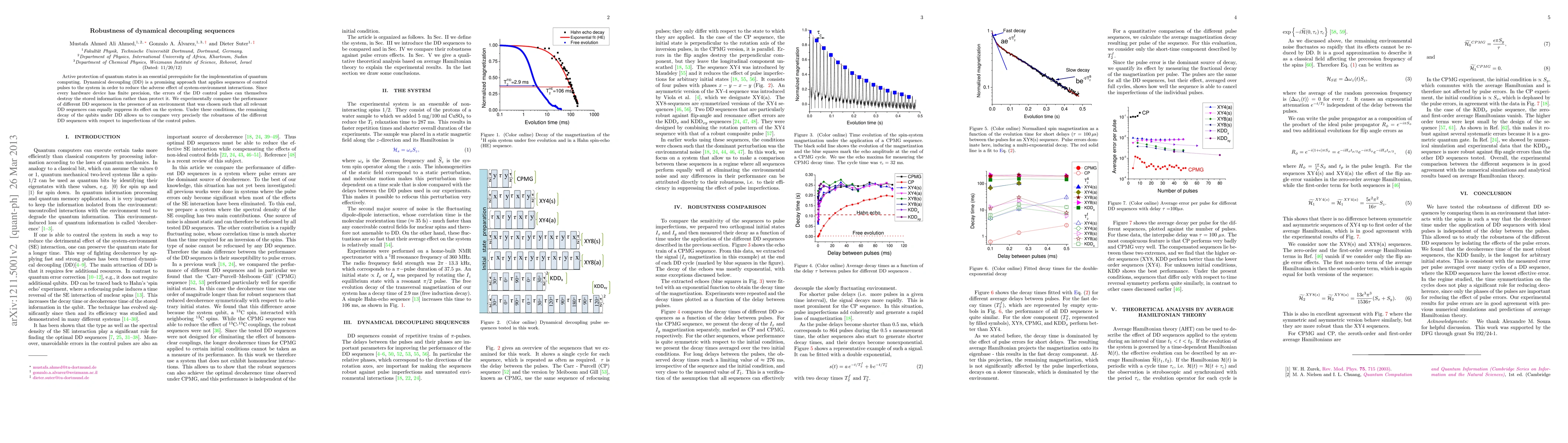 This paper investigates the robustness of various dynamical decoupling sequences in protecting quantum states against system-environment interactions, despite the finite precision of control pulses. Experimental results reveal the relative performance of different DD sequences under controlled conditions, highlighting their robustness against imperfections.
