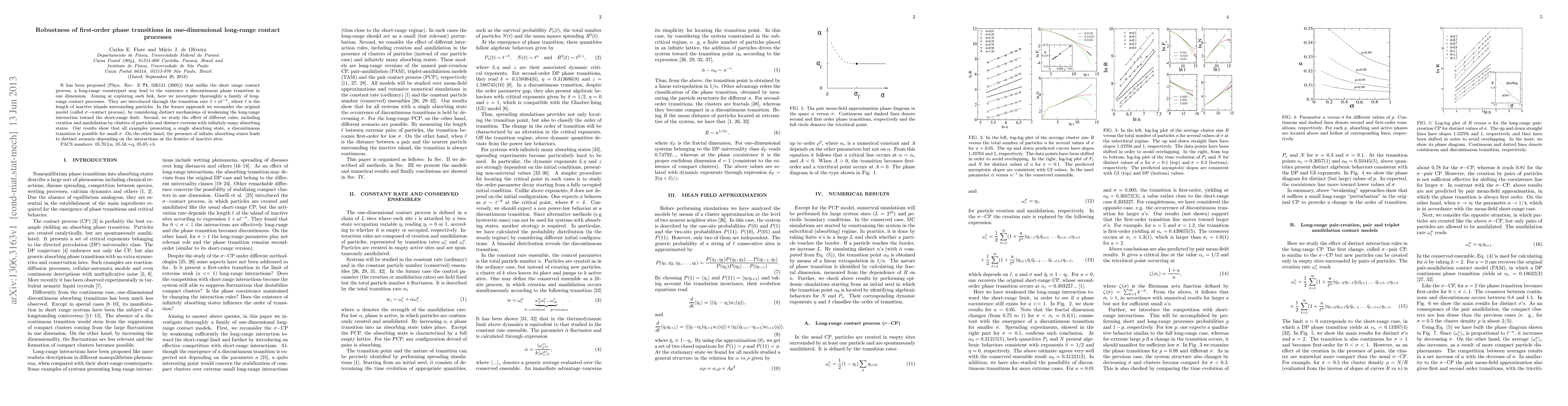 This paper explores the robustness of first-order phase transitions in one-dimensional long-range contact processes, demonstrating that a single absorbing state can lead to discontinuous transitions for small interaction parameters, while infinite absorbing states result in varied outcomes depending on the interaction rules.