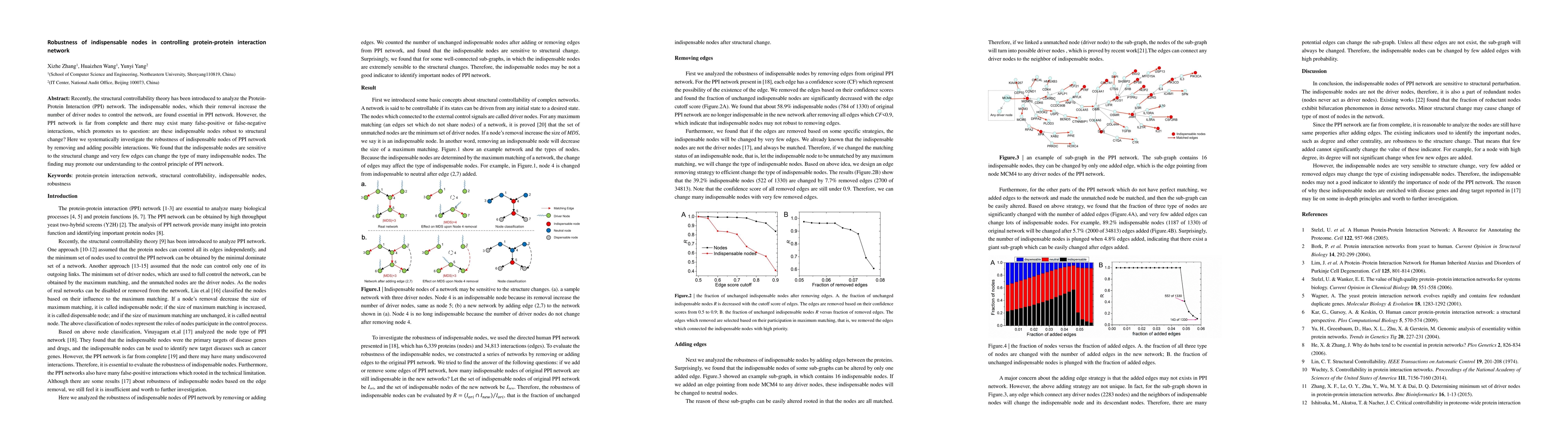 This work highlights the importance of considering structural controllability when analyzing PPI networks and provides new insights into the robustness of indispensable nodes.