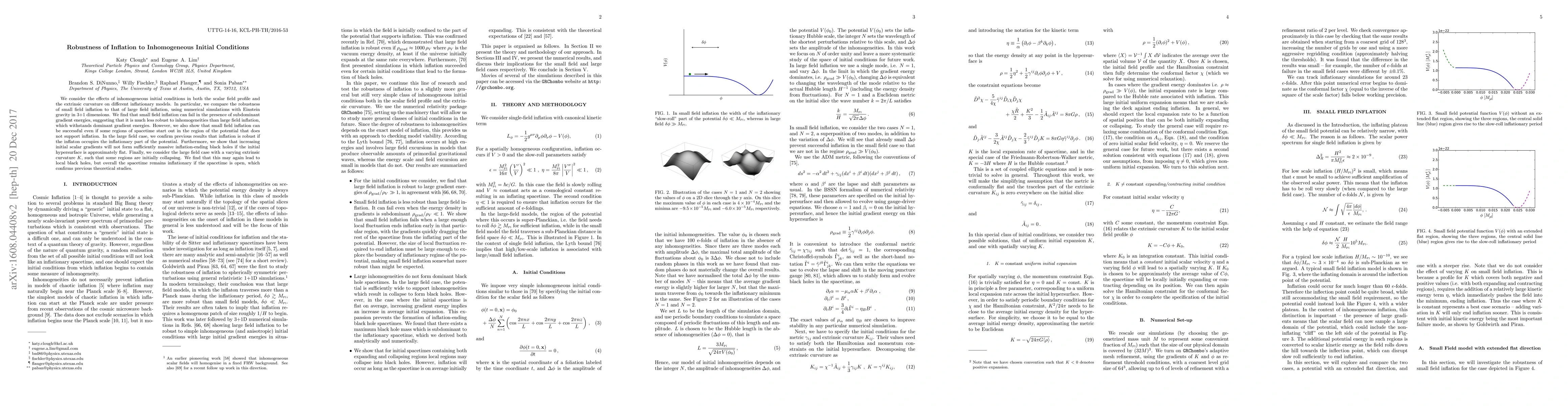 We consider the effects of inhomogeneous initial conditions in both the scalar field profile and the extrinsic curvature on different inflationary models. In particular, we compare the robustness of small field inflation to that of large field inflation, using numerical simulations with Einstein gravity in 3+1 dimensions. We find that small field inflation can fail in the presence of subdominant gradient energies, suggesting that it is much less robust to inhomogeneities than large field inflation, which withstands dominant gradient energies. However, we also show that small field inflation can be successful even if some regions of spacetime start out in the region of the potential that does not support inflation. In the large field case, we confirm previous results that inflation is robust if the inflaton occupies the inflationary part of the potential. Furthermore, we show that increasing initial scalar gradients will not form sufficiently massive inflation-ending black holes if the initial hypersurface is approximately flat. Finally, we consider the large field case with a varying extrinsic curvature K, such that some regions are initially collapsing. We find that this may again lead to local black holes, but overall the spacetime remains inflationary if the spacetime is open, which confirms previous theoretical studies.