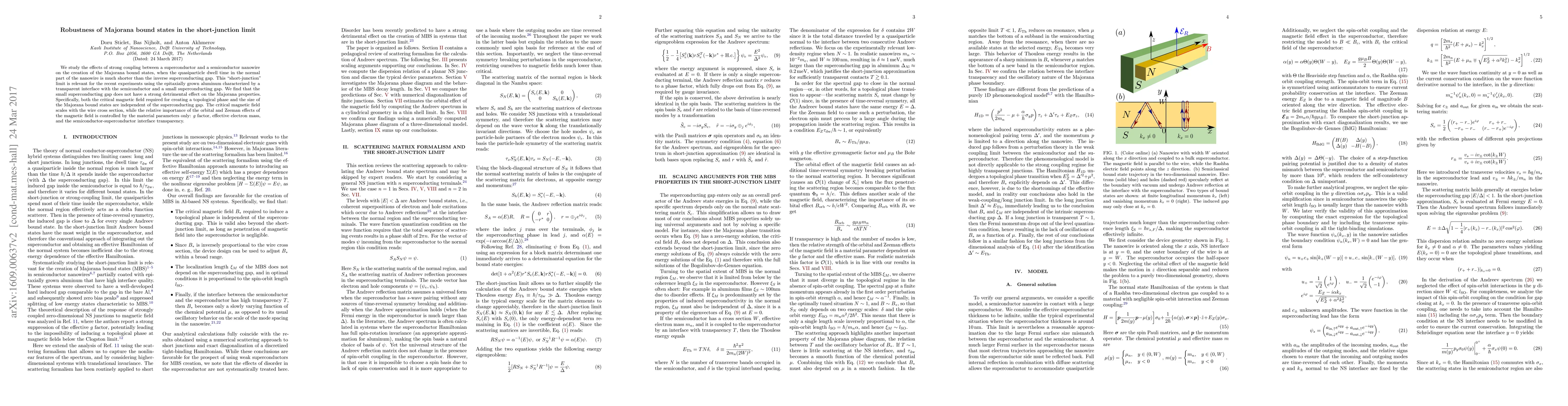 We study the effects of strong coupling between a superconductor and a semiconductor nanowire on the creation of the Majorana bound states, when the quasiparticle dwell time in the normal part of the nanowire is much shorter than the inverse superconducting gap. This "short junction" limit is relevant for the recent experiments using the epitaxially grown aluminum characterized by a transparent interface with the semiconductor and a small superconducting gap. We find that the small superconducting gap does not have a strong detrimental effect on the Majorana properties. Specifically, both the critical magnetic field required for creating a topological phase and the size of the Majorana bound states are independent of the superconducting gap. The critical magnetic field scales with the wire cross section, while the relative importance of the orbital and Zeeman effects of the magnetic field is controlled by the material parameters only: $g$-factor, effective electron mass, and the semiconductor-superconductor interface transparency.
