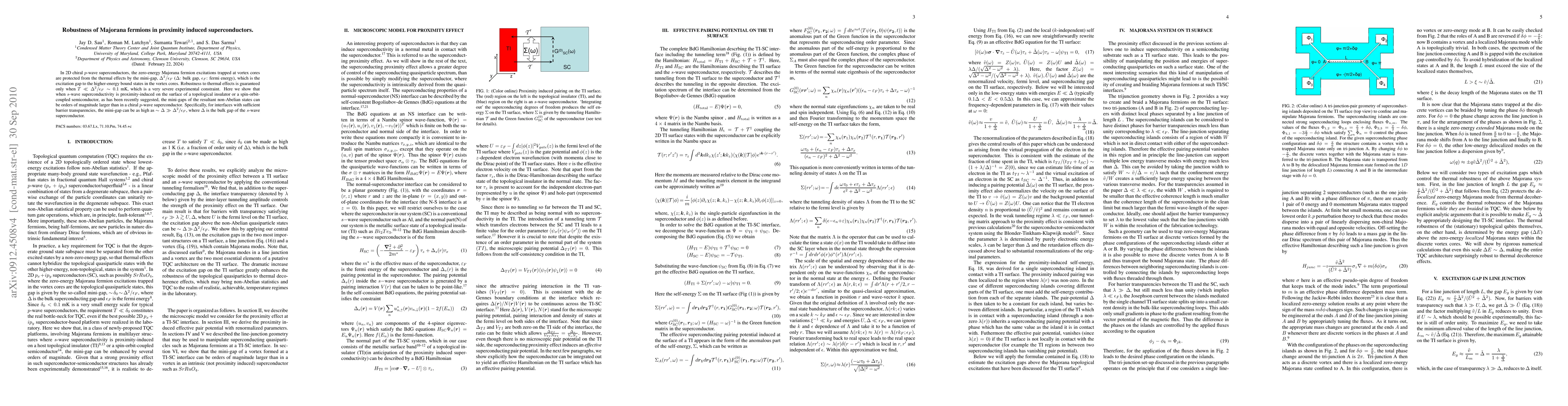 In 2D chiral p-wave superconductors, the zero-energy Majorana fermion excitations trapped at vortex cores follow non-Abelian statistics which can be potentially exploited to build a topological quantum computer. The Majorana states are protected from the thermal effects by the mini-gap, $\Delta^2/\epsilon_F$ ($\Delta$:bulk gap, $\epsilon_F$: Fermi energy), which is the excitation gap to the higher-energy, non-topological, bound states in the vortex cores. Robustness to thermal effects is guaranteed only when $T \ll \Delta^2/\epsilon_F \sim 0.1$ mK, which is a very severe experimental constraint. Here we show that when s-wave superconductivity is proximity-induced on the surface of a topological insulator or a spin-orbit-coupled semiconductor, as has been recently suggested, the mini-gaps of the resultant non-Abelian states can be orders of magnitude larger than in a chiral p-wave superconductor. Specifically, for interfaces with high barrier transparencies, the mini-gap can be as high as $\sim \Delta \gg \Delta^2/\epsilon_F $, where $\Delta$ is the bulk gap of the s-wave superconductor responsible for the proximity effect.