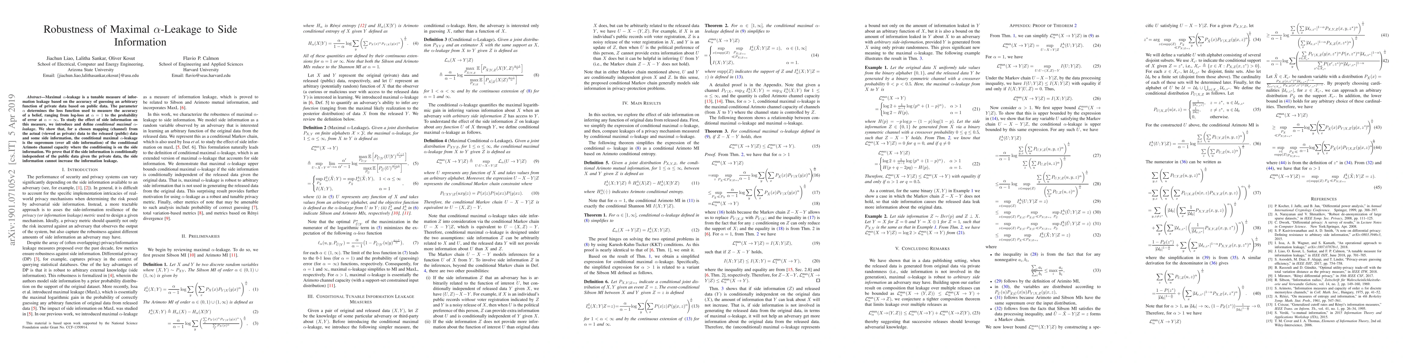 This paper examines the impact of side information on maximal $\alpha$-leakage, a tunable measure of information leakage based on the accuracy of guessing private data functions from public data. It introduces conditional maximal $\alpha$-leakage and proves that conditionally independent side information does not increase information leakage, indicating robustness of the leakage measure to side information.