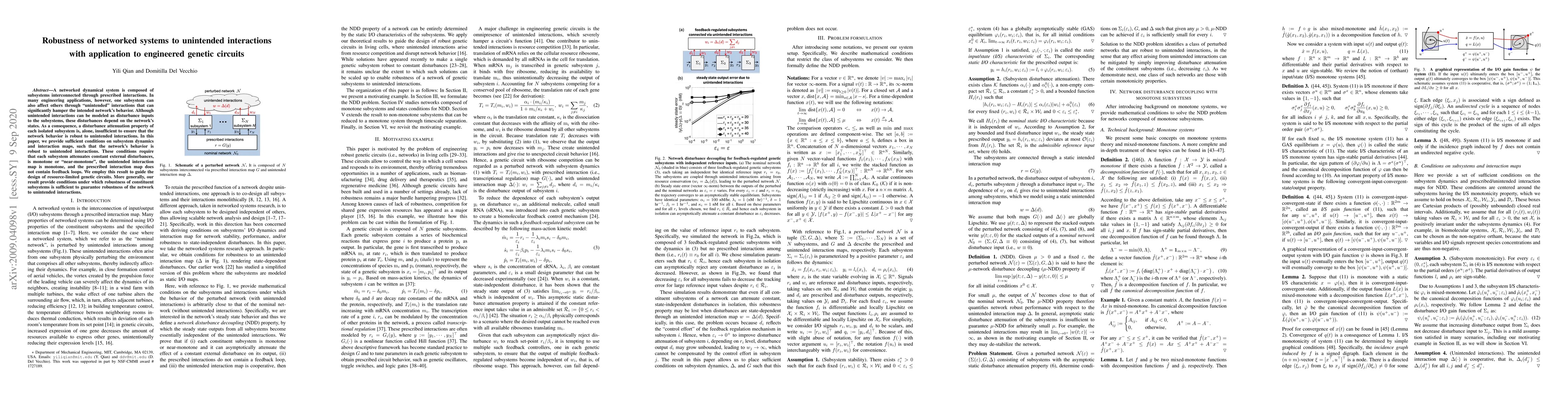 A networked dynamical system is composed of subsystems interconnected through prescribed interactions. In many engineering applications, however, one subsystem can also affect others through "unintended" interactions that can significantly hamper the intended network's behavior. Although unintended interactions can be modeled as disturbance inputs to the subsystems, these disturbances depend on the network's states. As a consequence, a disturbance attenuation property of each isolated subsystem is, alone, insufficient to ensure that the network behavior is robust to unintended interactions. In this paper, we provide sufficient conditions on subsystem dynamics and interaction maps, such that the network's behavior is robust to unintended interactions. These conditions require that each subsystem attenuates constant external disturbances, is monotone or "near-monotone", the unintended interaction map is monotone, and the prescribed interaction map does not contain feedback loops. We employ this result to guide the design of resource-limited genetic circuits. More generally, our result provide conditions under which robustness of constituent subsystems is sufficient to guarantee robustness of the network to unintended interactions.