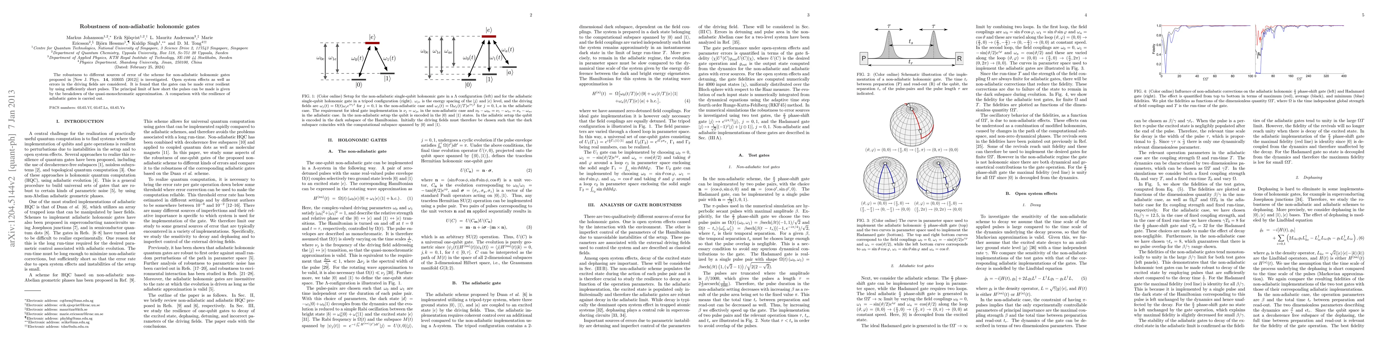 Researchers investigated the robustness of non-adiabatic holonomic gates to errors in driving fields and open system effects, finding that short pulses can improve resilience up to a limit set by the quasi-monochromatic approximation.