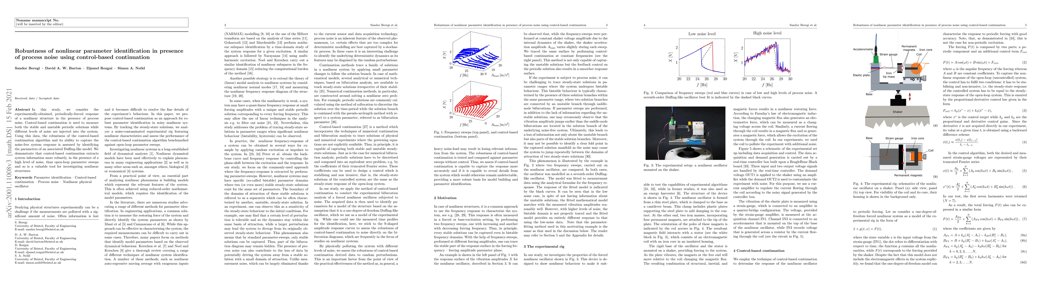 This paper investigates the robustness of control-based continuation for identifying nonlinear system parameters in the presence of process noise, demonstrating its superior performance over open-loop parameter sweeps using a Duffing-like model. The method effectively captures system responses even with high levels of noise.