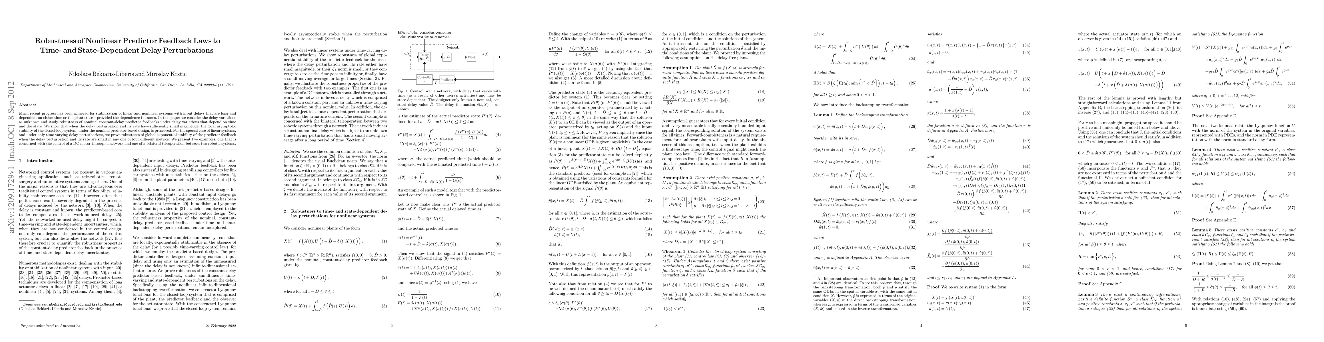 This paper investigates the robustness of nonlinear predictor feedback laws under time- and state-dependent delay perturbations, demonstrating local asymptotic stability preservation when delay variations are small. For linear systems with time-varying delays, it proves global exponential stability robustness under small perturbation magnitudes.