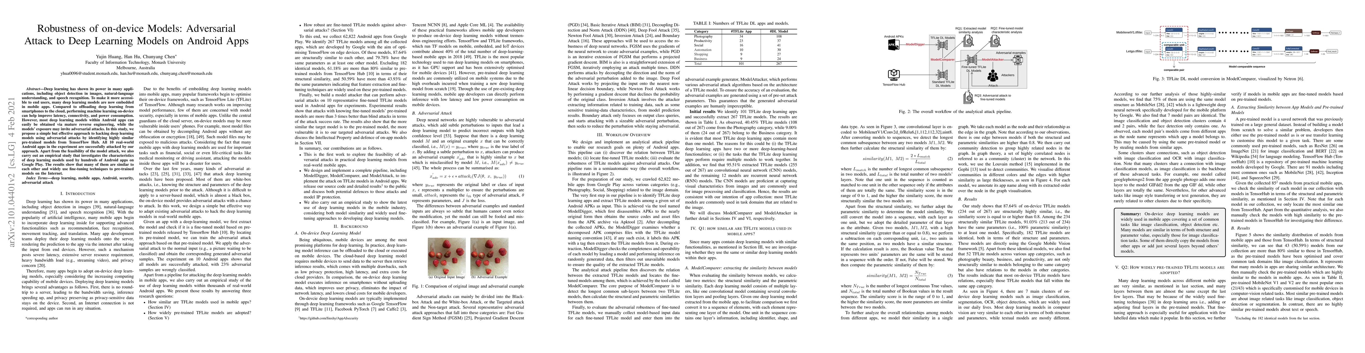 This study investigates the vulnerability of on-device deep learning models in Android apps to adversarial attacks, demonstrating a successful hacking method using similar pre-trained models from TensorFlow Hub. The research also reveals that many Android apps use similar deep learning models, often employing fine-tuning techniques on pre-trained internet models.