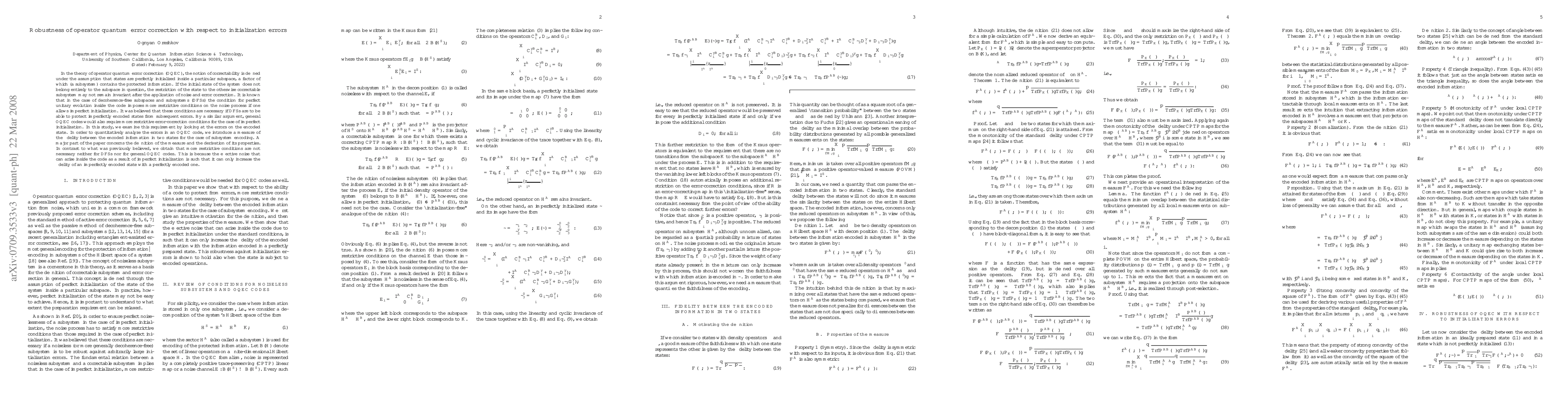 This paper investigates the robustness of operator quantum error correction (OQEC) under imperfect initialization errors. Contrary to previous beliefs, it finds that more restrictive error-correction conditions are not necessary for decoherence-free subspaces or general OQEC codes, as the effective noise from imperfect initialization actually increases the fidelity between imperfectly and perfectly encoded states.
