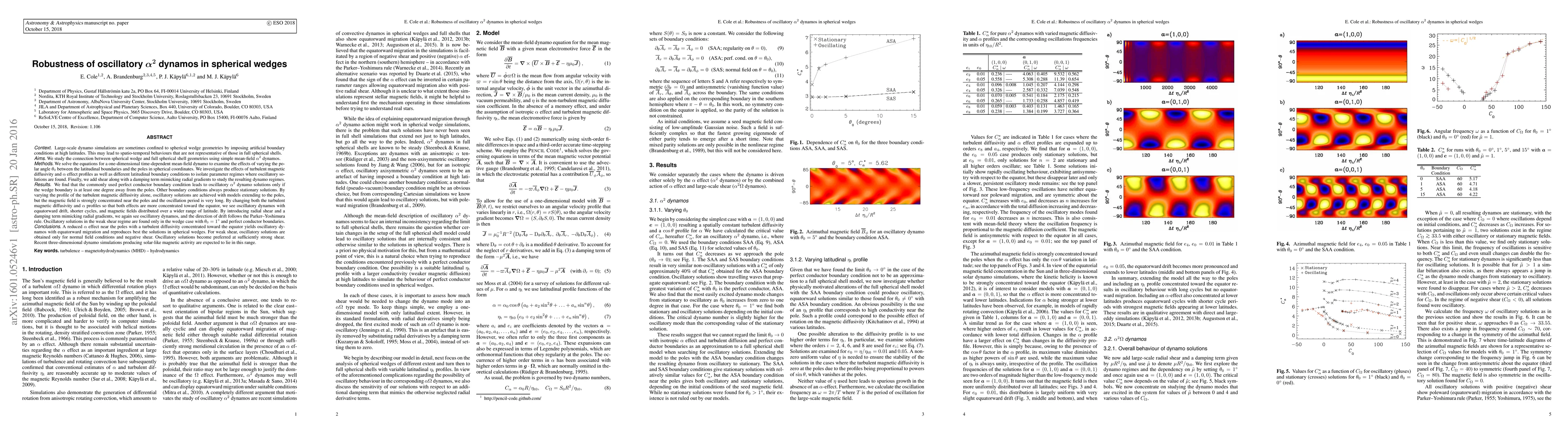 This paper examines the robustness of oscillatory $\alpha^2$ dynamos in spherical wedges compared to full spherical shells, finding that perfect conductor boundaries yield oscillatory solutions only when the wedge is slightly off the poles. Oscillatory dynamos can also be achieved with varying magnetic diffusivity profiles and by introducing radial shear and damping terms, which influence the direction of magnetic field drift.