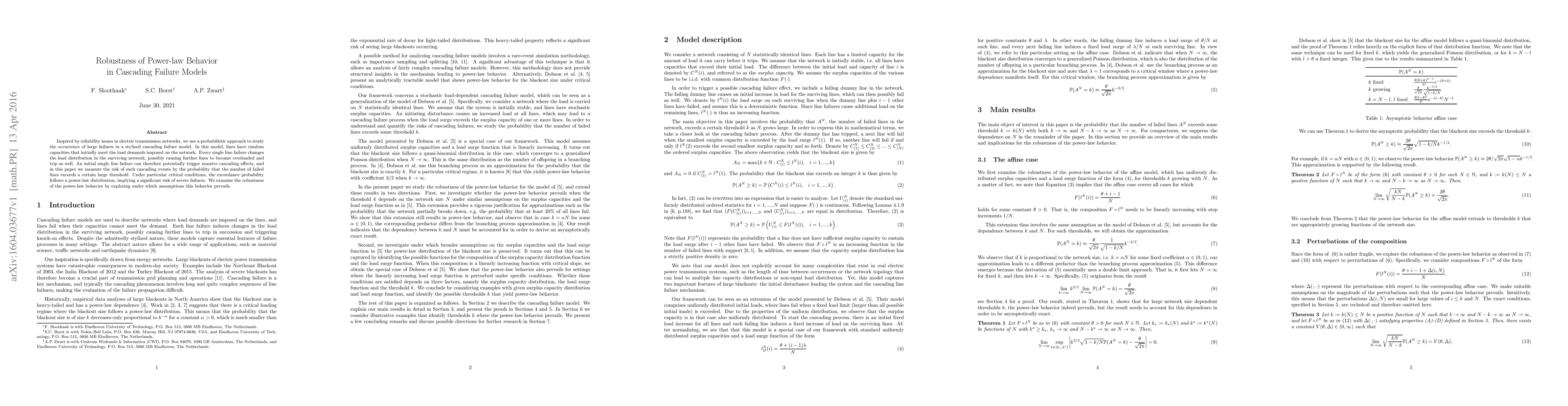 Inspired by reliability issues in electric transmission networks, we use a probabilistic approach to study the occurrence of large failures in a stylized cascading failure model. In this model, lines have random capacities that initially meet the load demands imposed on the network. Every single line failure changes the load distribution in the surviving network, possibly causing further lines to become overloaded and trip as well. An initial single line failure can therefore potentially trigger massive cascading effects, and in this paper we measure the risk of such cascading events by the probability that the number of failed lines exceeds a certain large threshold. Under particular critical conditions, the exceedance probability follows a power-law distribution, implying a significant risk of severe failures. We examine the robustness of the power-law behavior by exploring under which assumptions this behavior prevails.