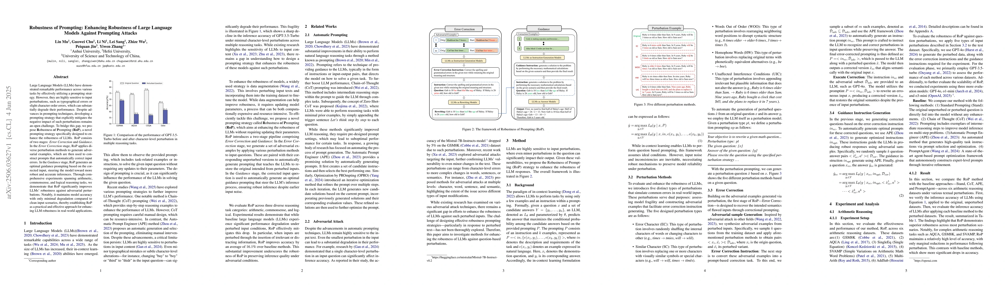 The research proposes Robustness of Prompting (RoP), a two-stage strategy for enhancing the robustness of Large Language Models (LLMs). RoP includes Error Correction, applying diverse perturbation methods to generate adversarial examples for prompt construction, and Guidance, creating an optimal prompting to steer the model toward accurate inferences.