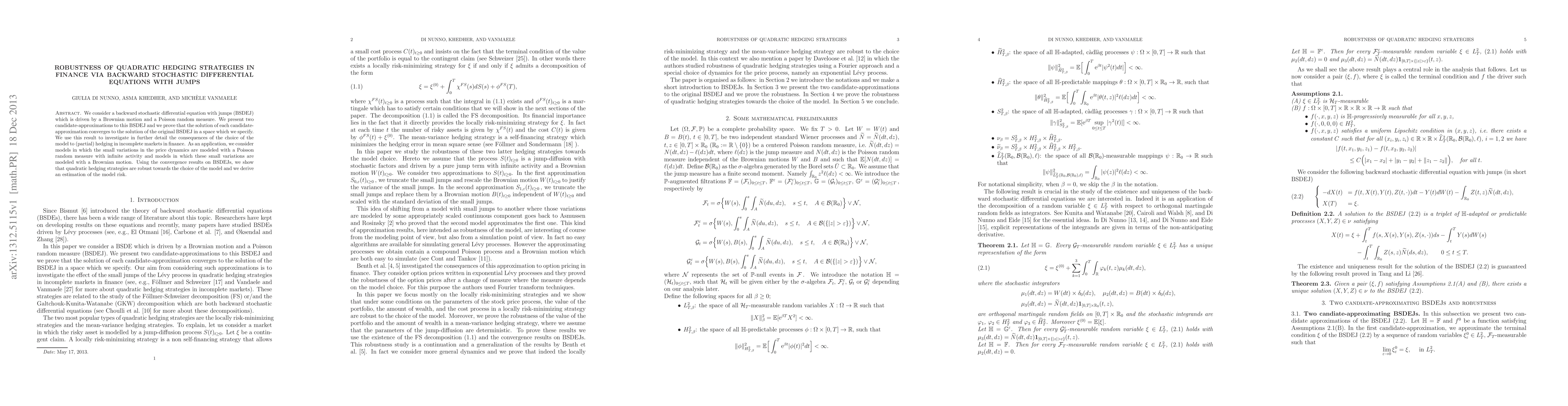 This paper investigates the robustness of quadratic hedging strategies in finance using backward stochastic differential equations with jumps (BSDEJ). It proves the convergence of two candidate approximations to the original BSDEJ and demonstrates that quadratic hedging strategies remain robust under different models of price dynamics, estimating the associated model risk.
