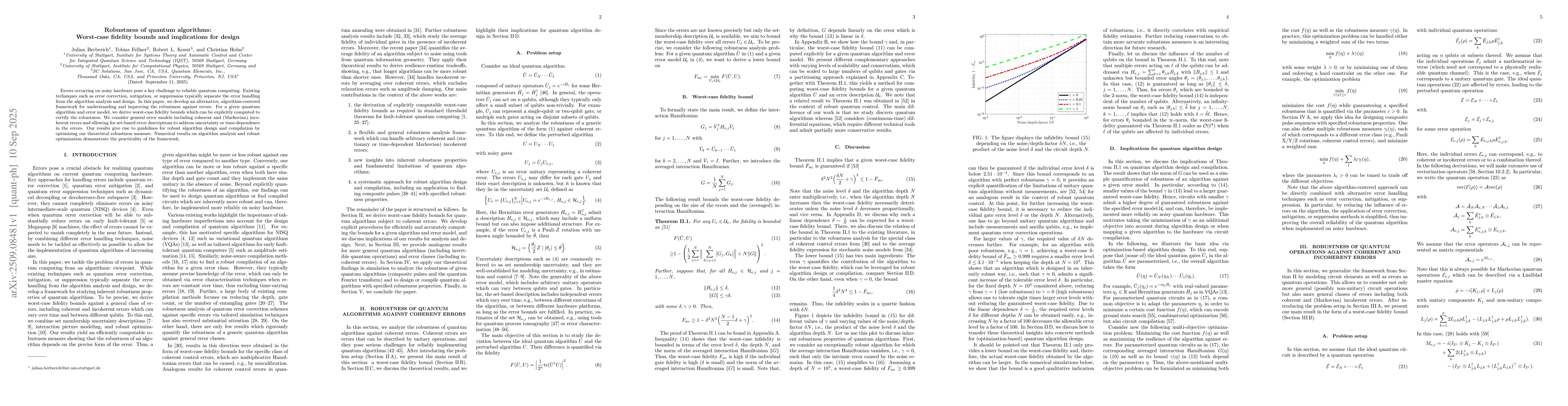 Errors occurring on noisy hardware pose a key challenge to reliable quantum computing. Existing techniques such as error correction, mitigation, or suppression typically separate the error handling from the algorithm analysis and design. In this paper, we develop an alternative, algorithm-centered framework for understanding and improving the robustness against errors. For a given quantum algorithm and error model, we derive worst-case fidelity bounds which can be explicitly computed to certify the robustness. We consider general error models including coherent and (Markovian) incoherent errors and allowing for set-based error descriptions to address uncertainty or time-dependence in the errors. Our results give rise to guidelines for robust algorithm design and compilation by optimizing our theoretical robustness measure. Numerical results on algorithm analysis and robust optimization demonstrate the practicality of the framework.
