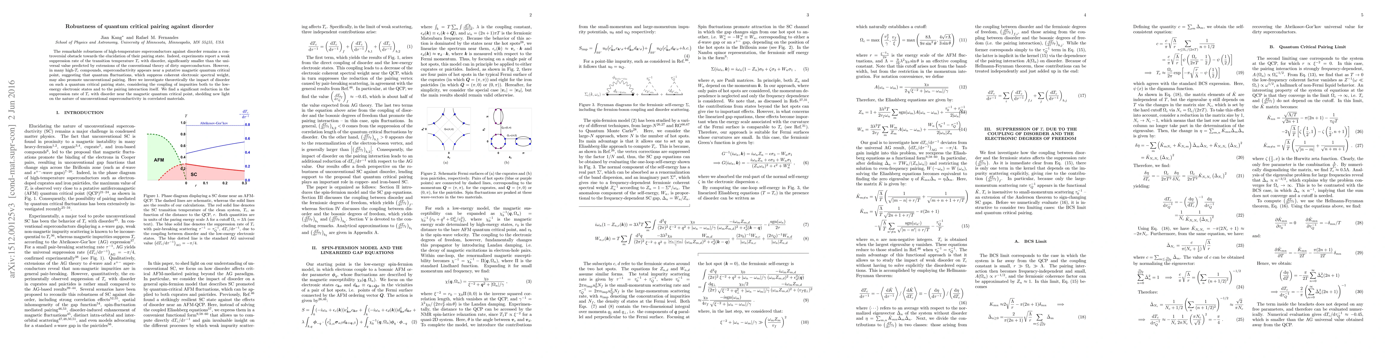 This paper investigates theoretically how disorder affects unconventional pairing near a magnetic quantum critical point in high-temperature superconductors, finding that the transition temperature $T_{c}$ is significantly less suppressed than predicted by conventional theory, suggesting quantum fluctuations play a crucial role in maintaining superconductivity.